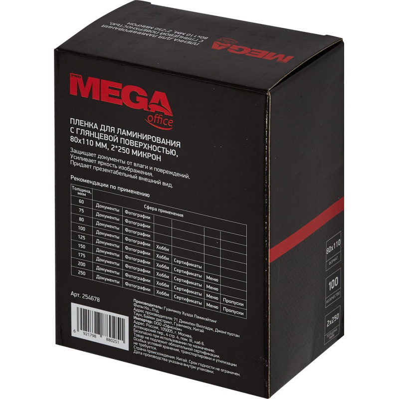Пленка для ламинирования Promega office 80х110, 175мкм 100шт/уп. 1 шт.