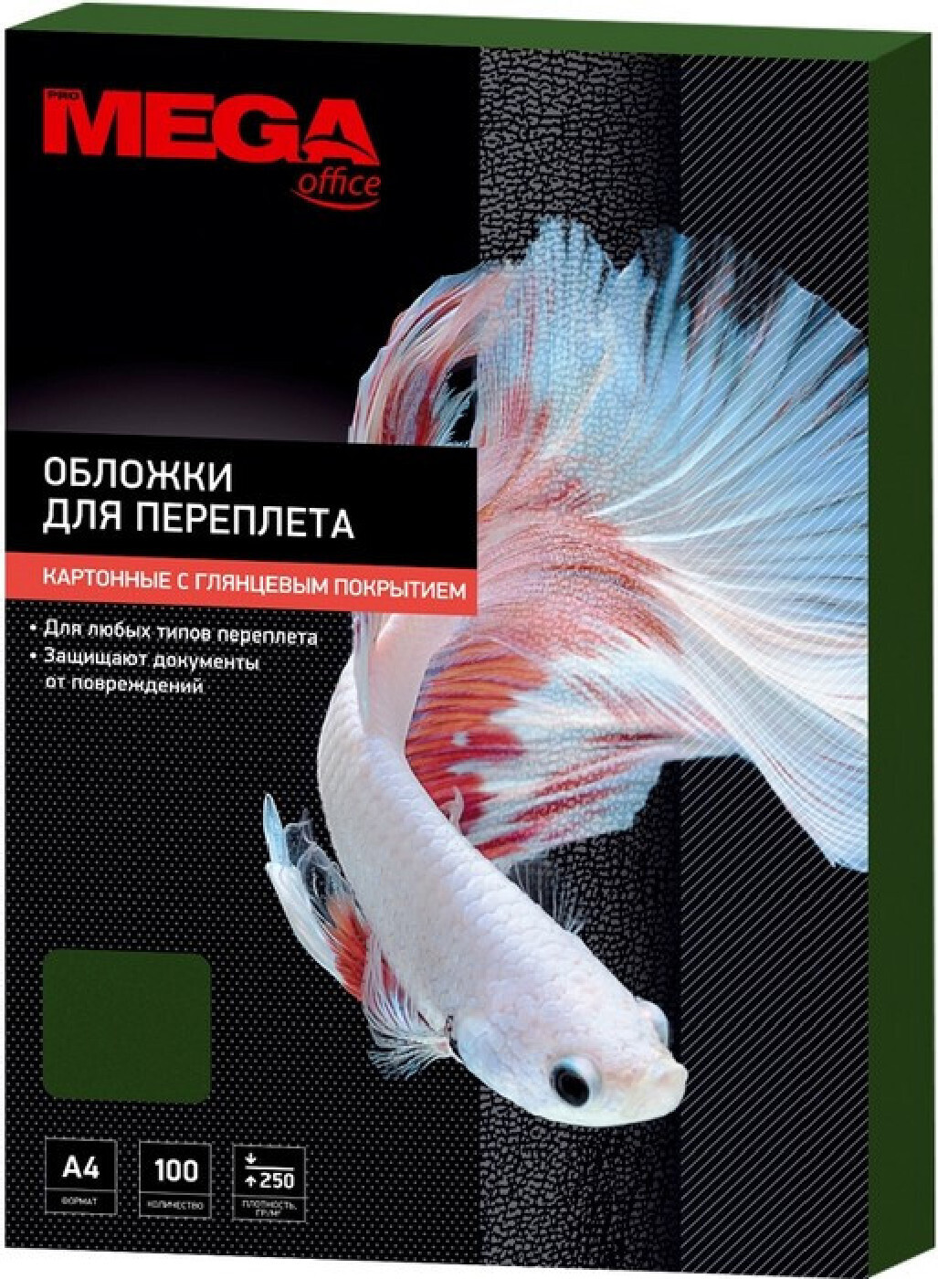 Обложки для переплета картонные Promega office зеленый глянец, А4, 250г, 100 штук в упаковке