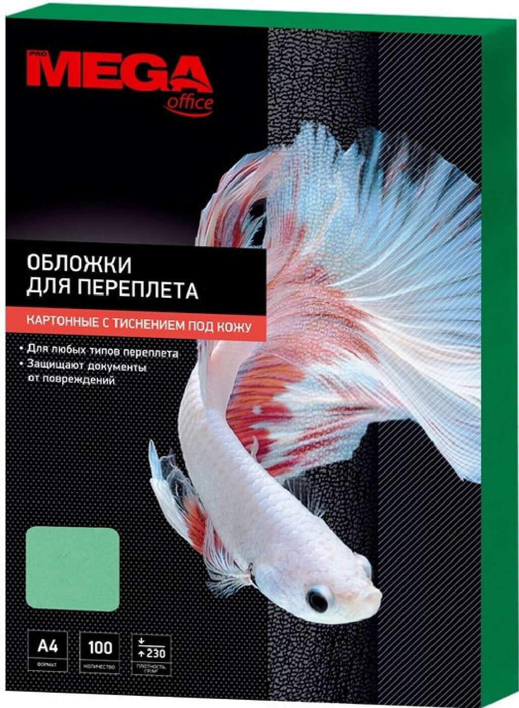 Обложки для переплета картонные Promega office зеленая кожа, А4, 230г, 100 штук в упаковке