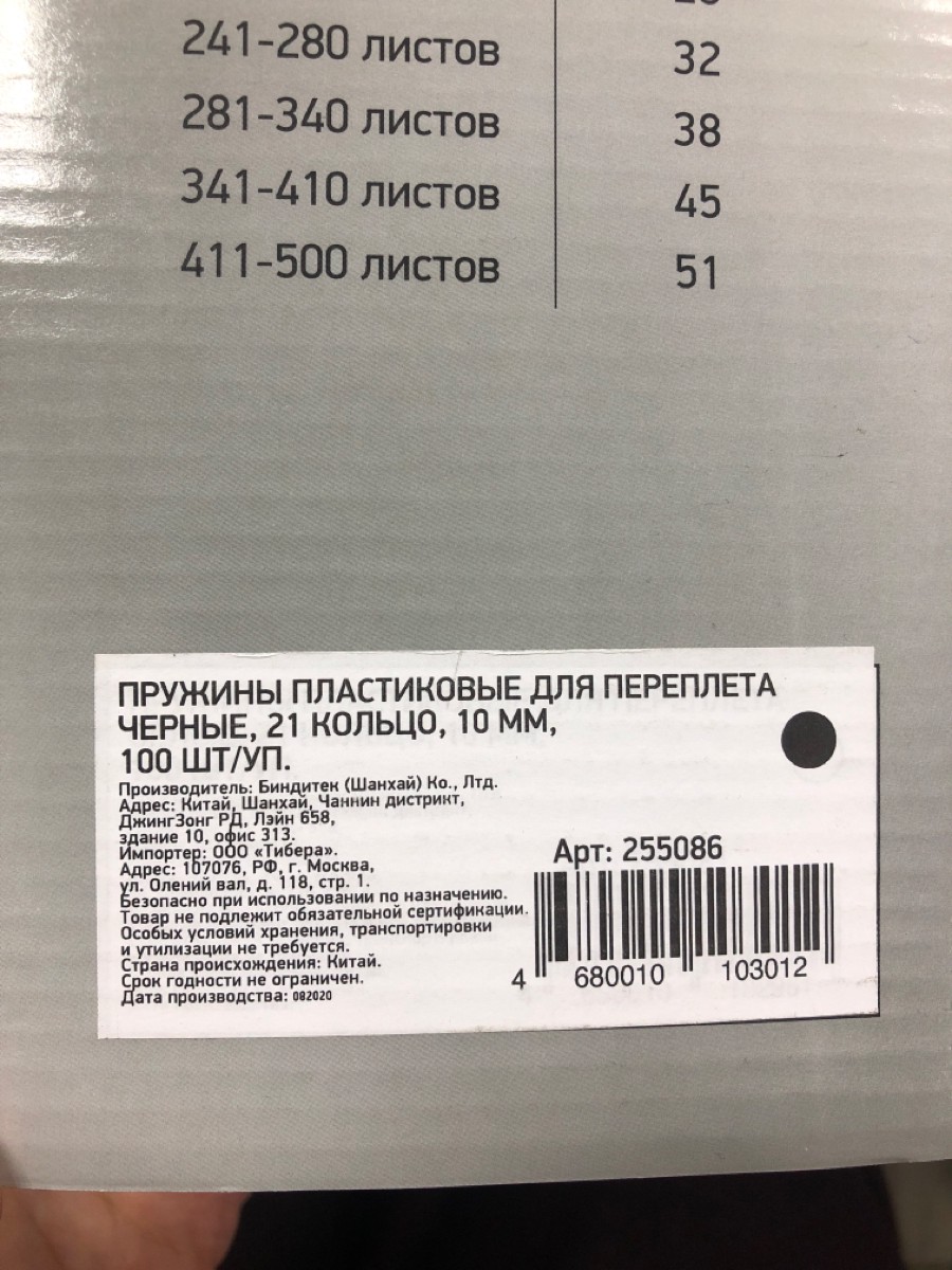 Пружины для переплета пластиковые Promega office 19мм черные 100шт/уп.