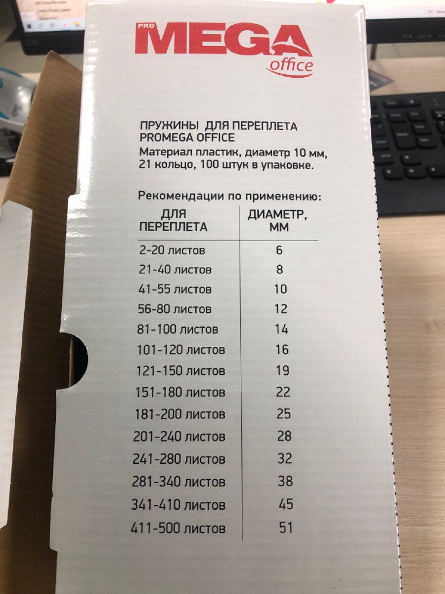 Пружины для переплета пластиковые Promega office 19 мм белые (100 штук в упаковке)