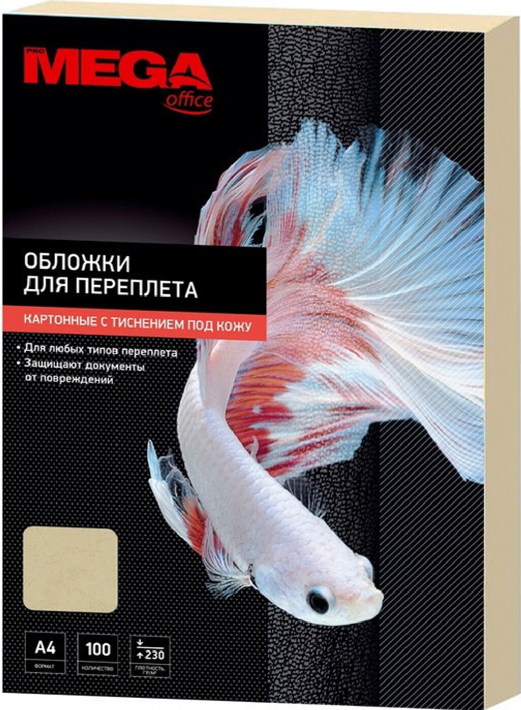Обложки для переплета картонные Promega office бежевая кожа, A4, 230г, 100 штук в упаковке