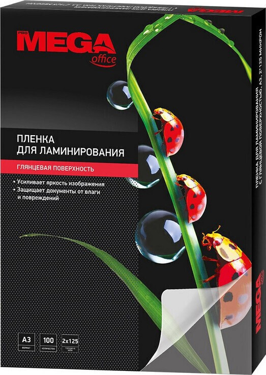 Пленка для ламинирования Promega office А3, 125 микрометров 100 штук в упаковке