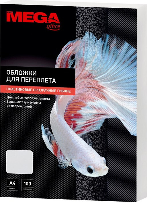 Обложки для переплета пластиковые Promega office прозрачный А4,180 микрометров,100 штук в упаковке