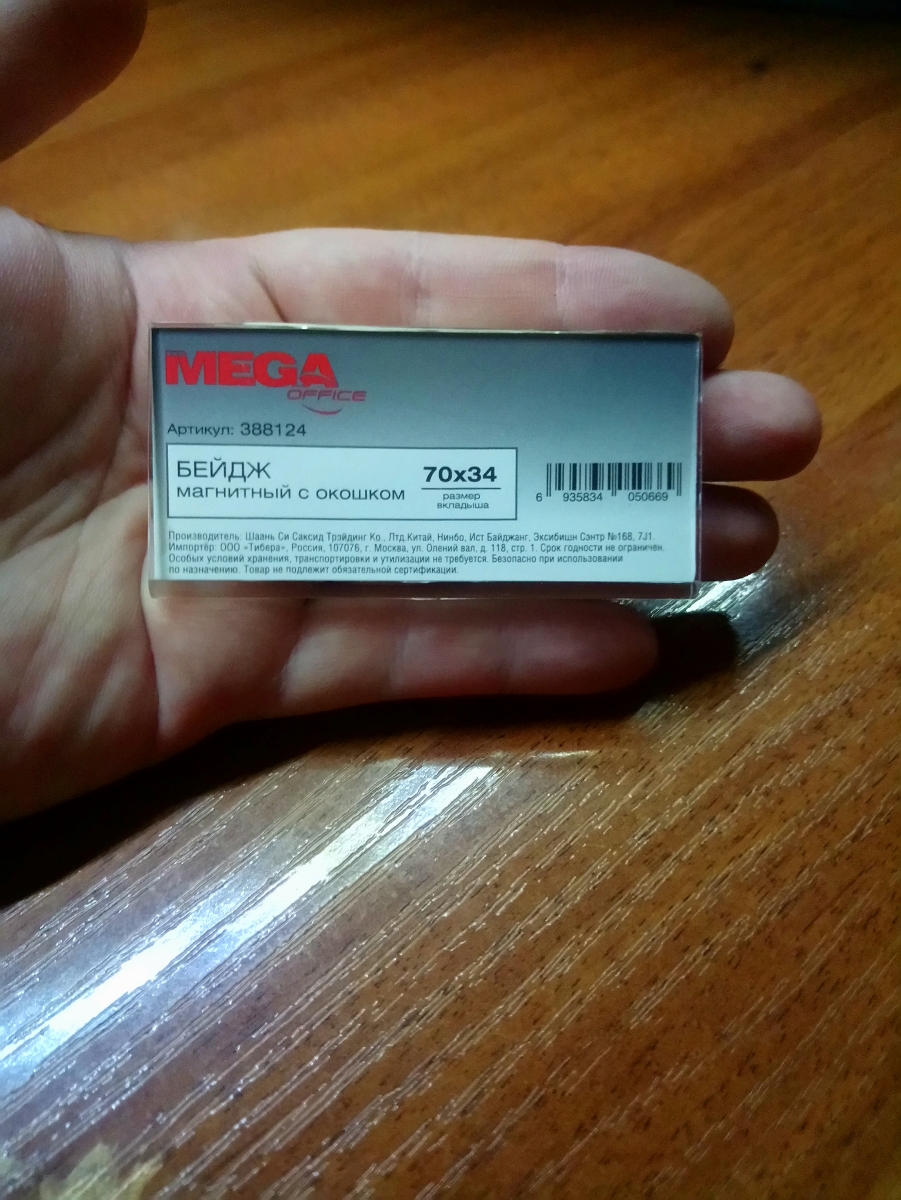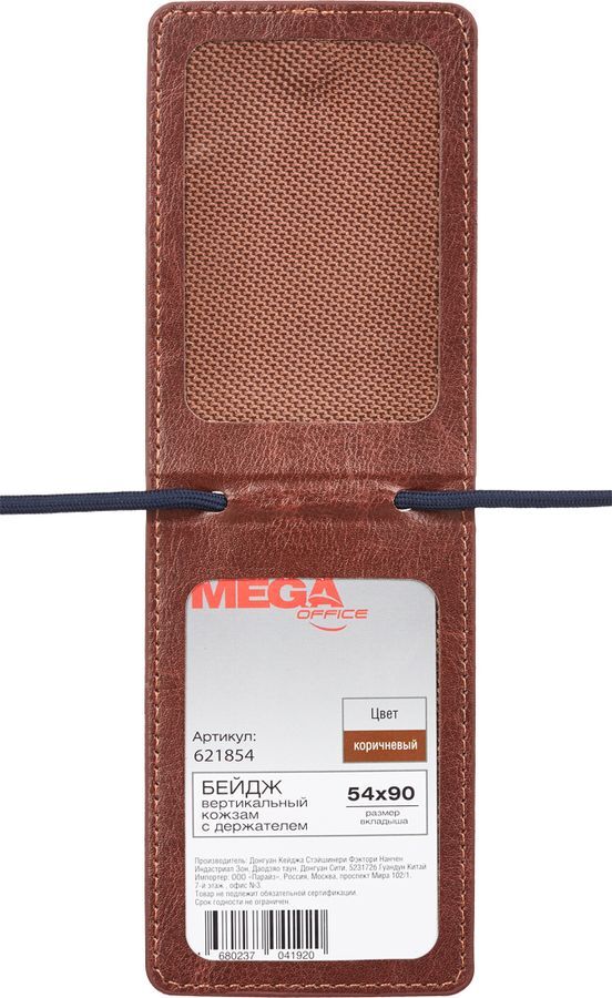 Бейдж ProMega Office Office, вертикальный, с черной тесьмой, 90 х 54 мм