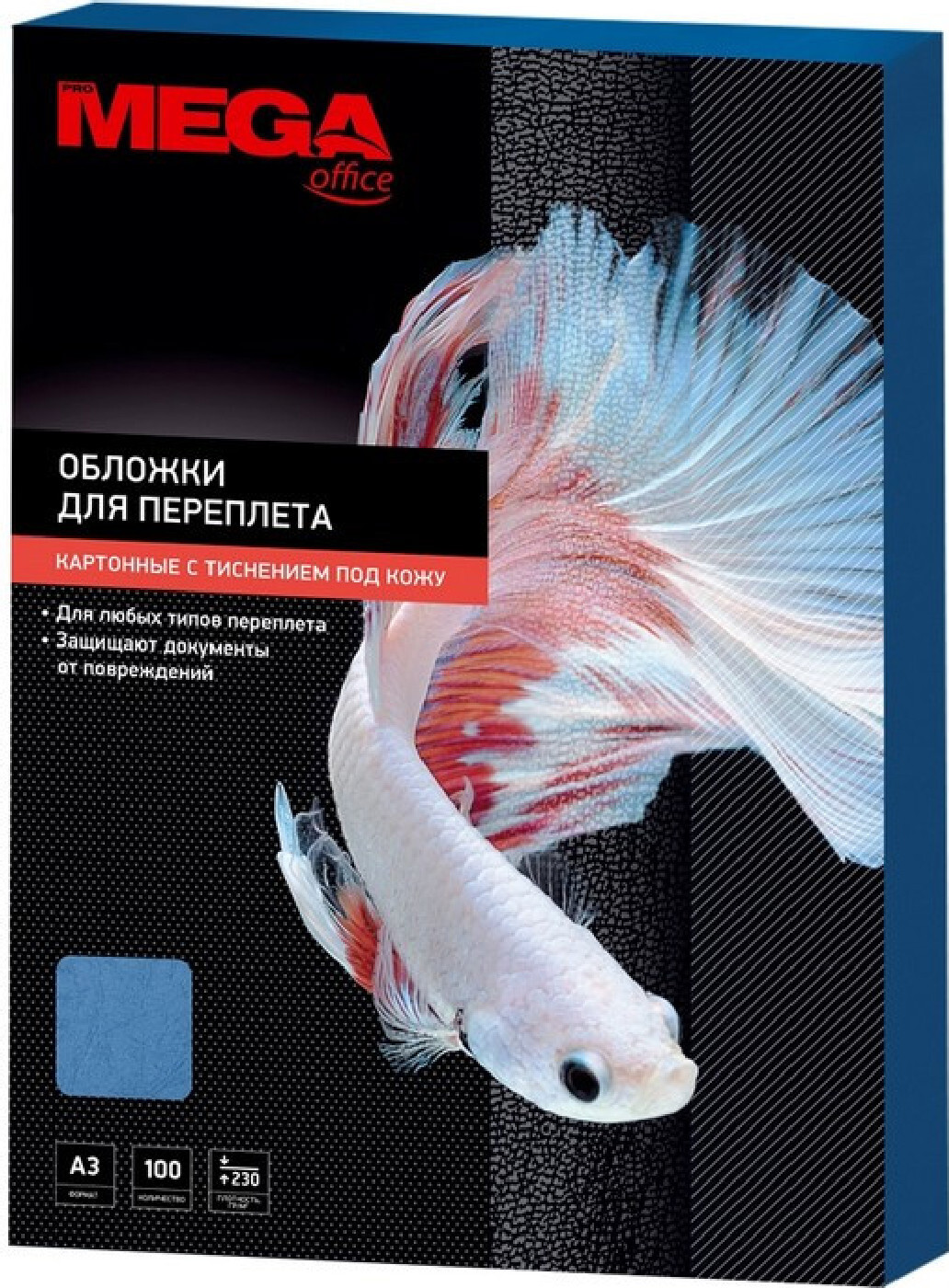 Обложки для переплета картонные Promega office синяя кожа, А3, 230г, 100 штук в упаковке