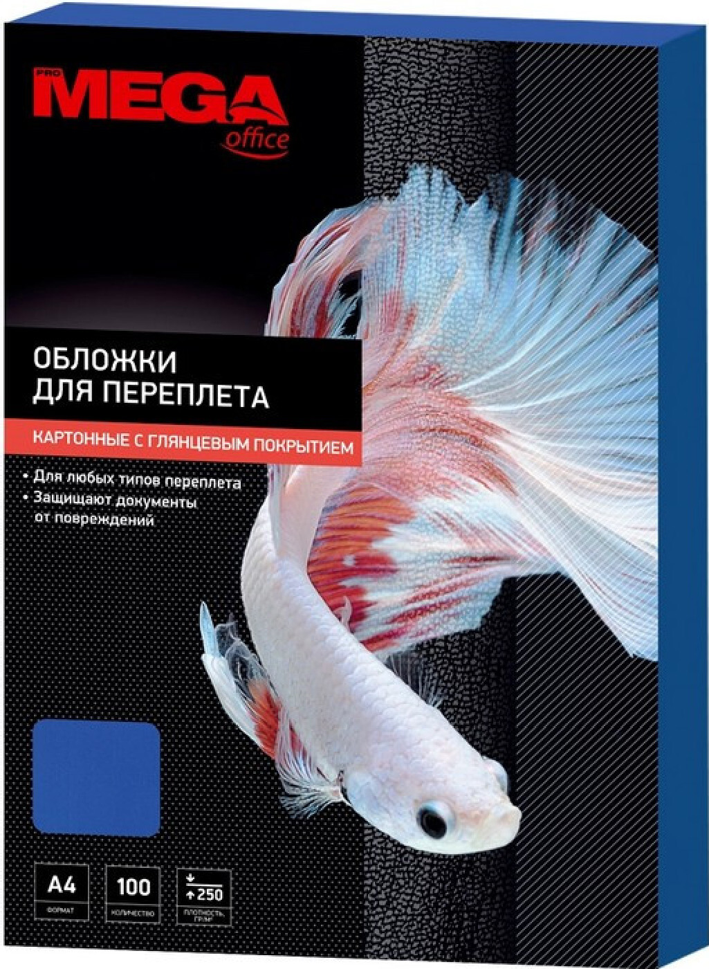 Обложки для переплета картонные Promega office синий глянец, А4, 250г, 100 штук в упаковке