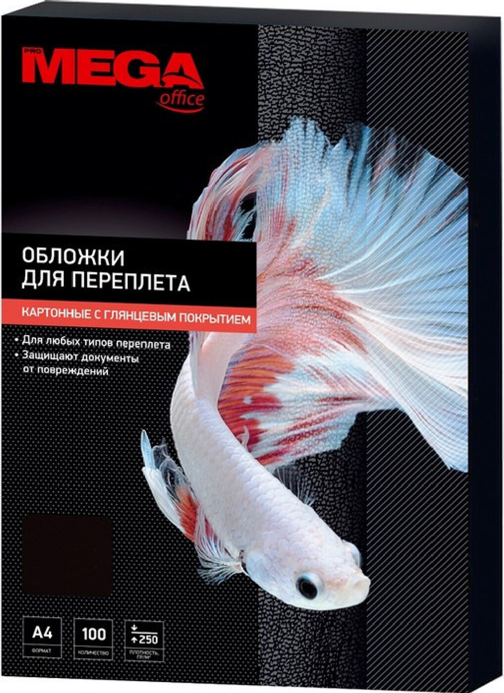 Обложки для переплета картонные ProMega Office чер.глянА4,250г/м2,100шт/уп.
