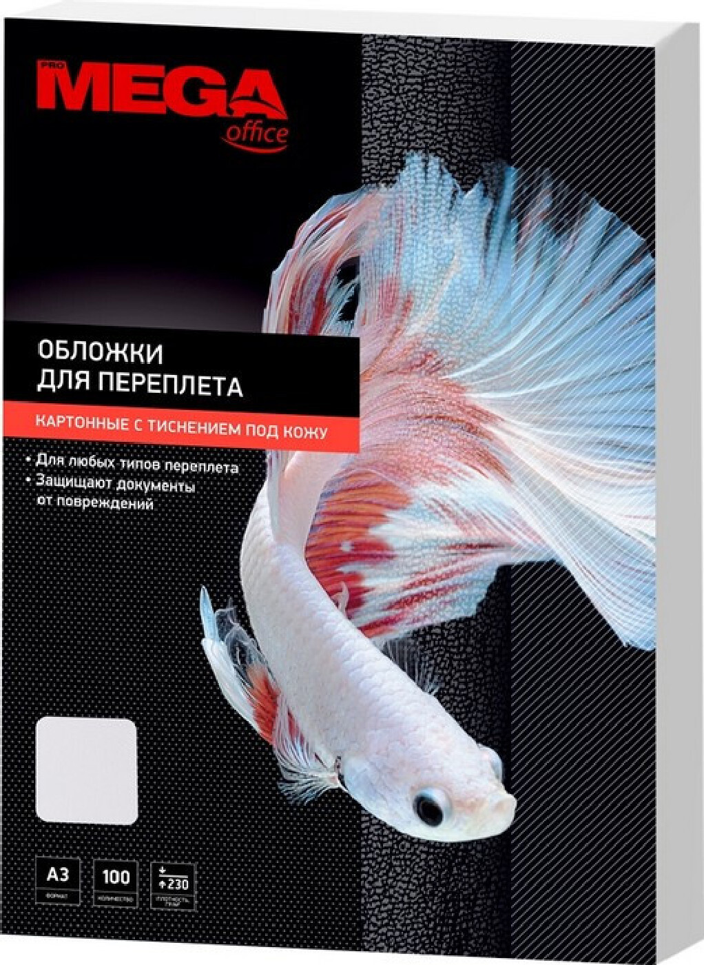 Обложки для переплета картонные Promega office белая кожа, А3, 230г, 100 штук в упаковке