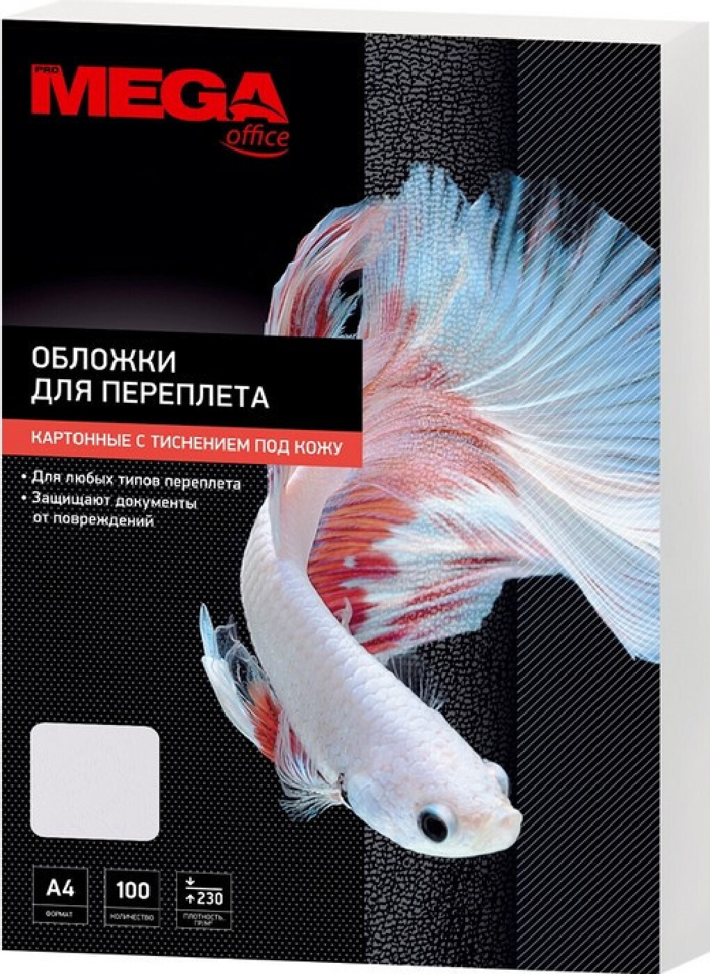 Обложки для переплета картонные Promega office белая кожа, А4, 230г, 100 штук в упаковке