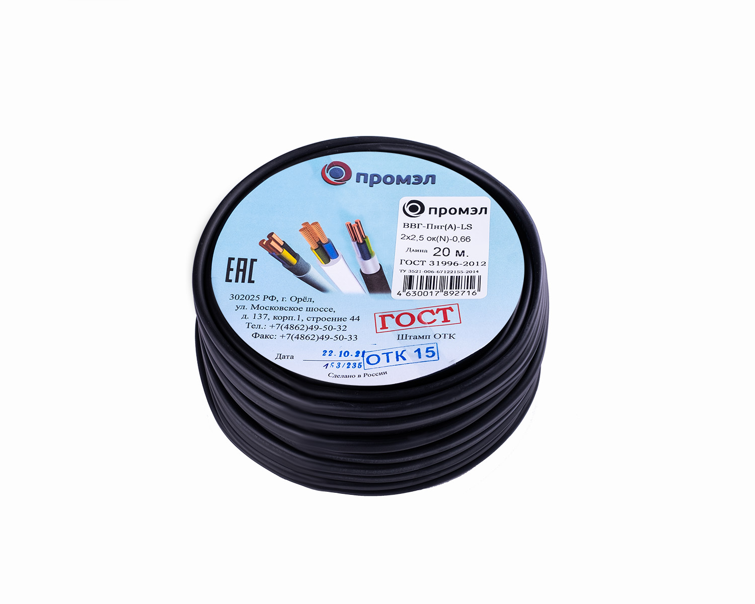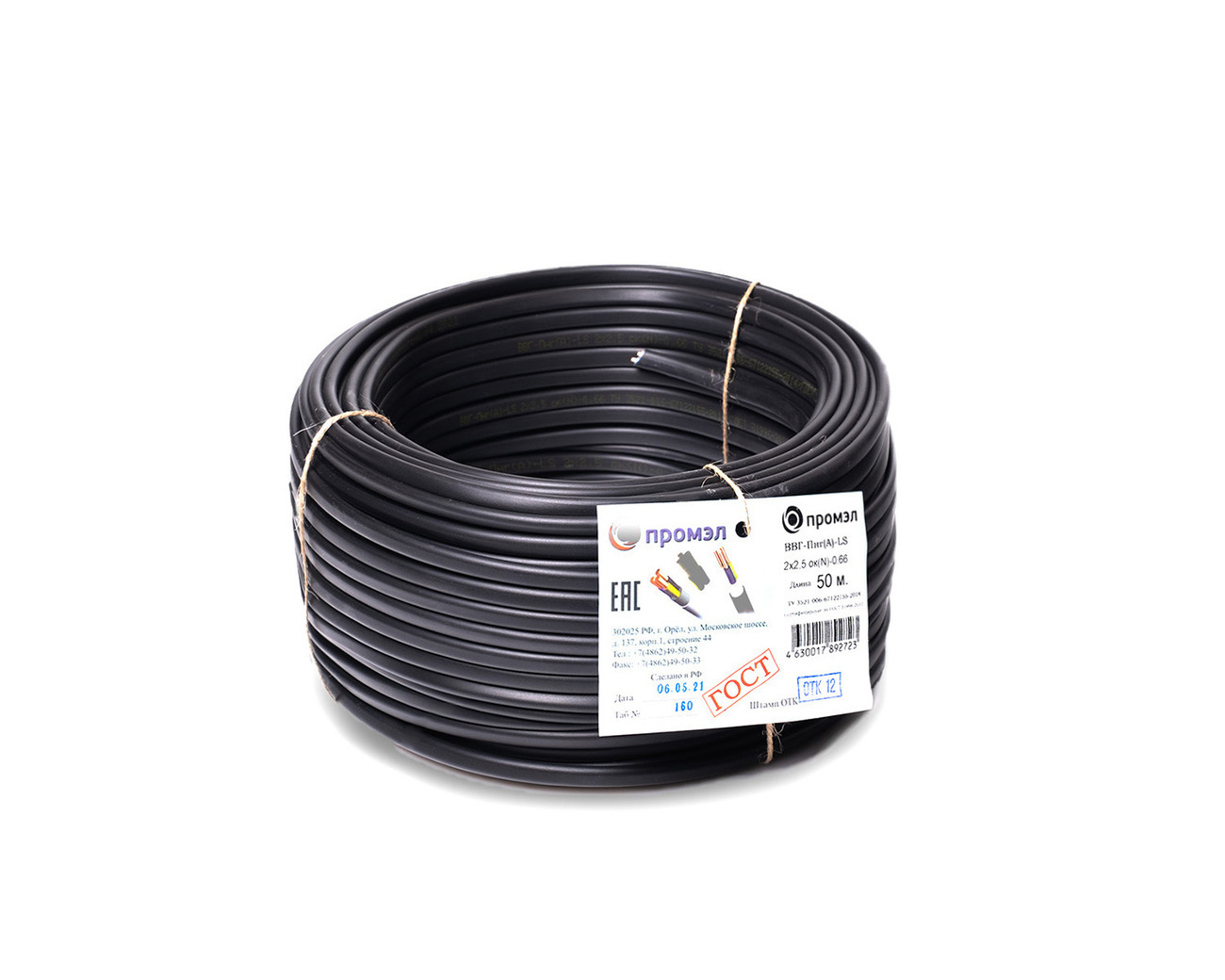 Электрический кабель ПромЭл ВВГнг(А)-LS 2 x 2,5 мм², 20 м