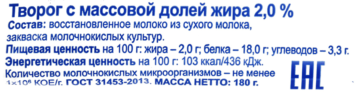 Творог Простоквашино, традиционный, 2%, 180 г