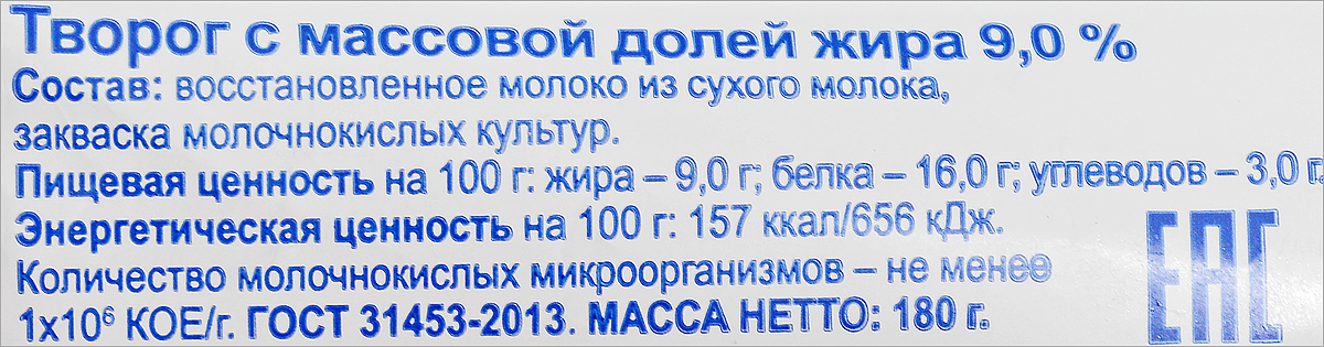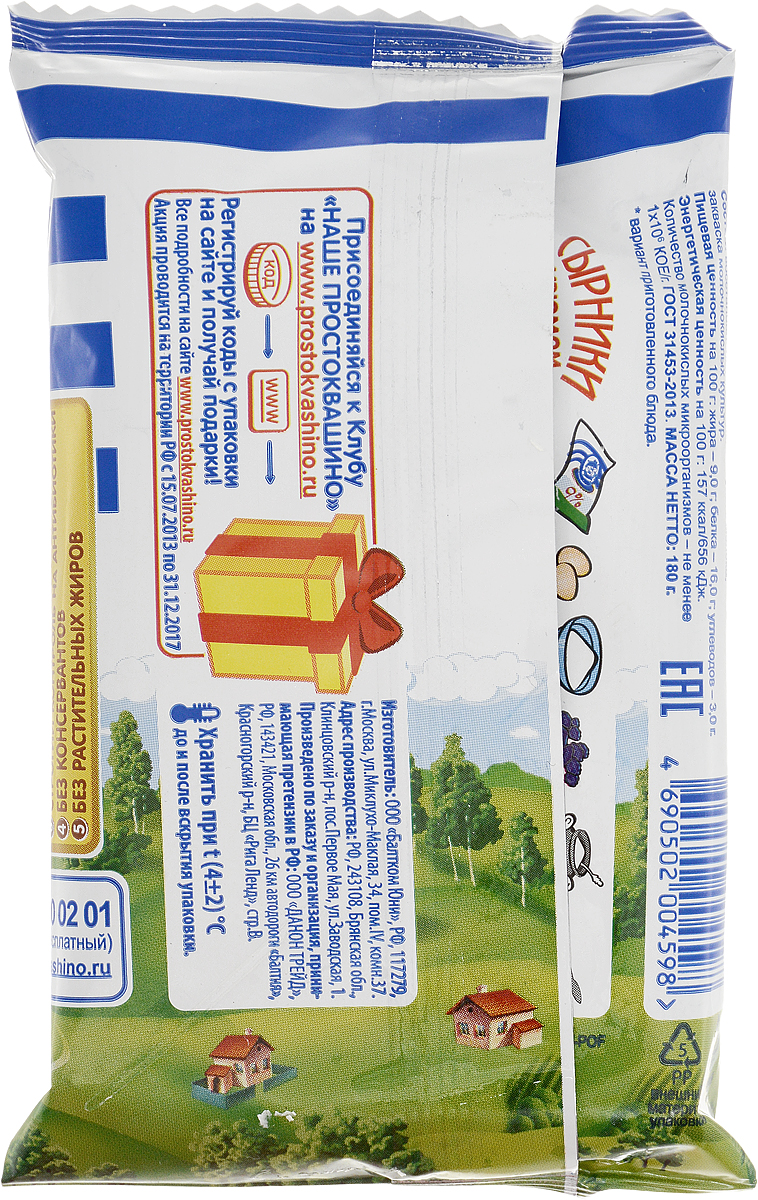 Творог Простоквашино, традиционный, 9%, 180 г