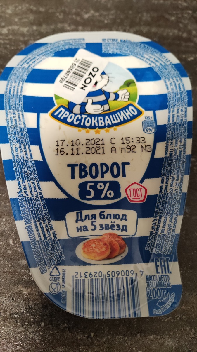 Творог Простоквашино 5%, 200 г