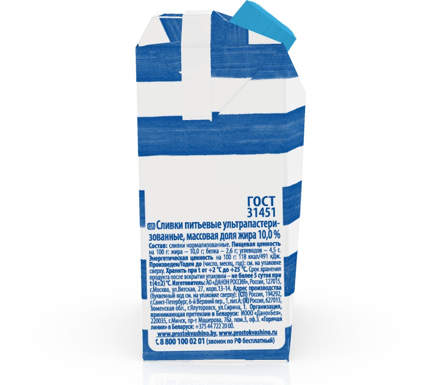 Сливки Простоквашино, ультрапастеризованные, 10%, 27 шт по 200 г