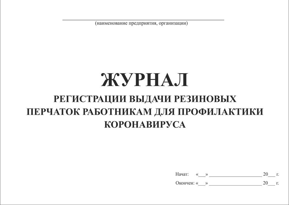 Журнал выдачи перчаток, журнал регистрации выдачи резиновых перчаток работникам для профилактики коронавируса (А4, 40 стр)