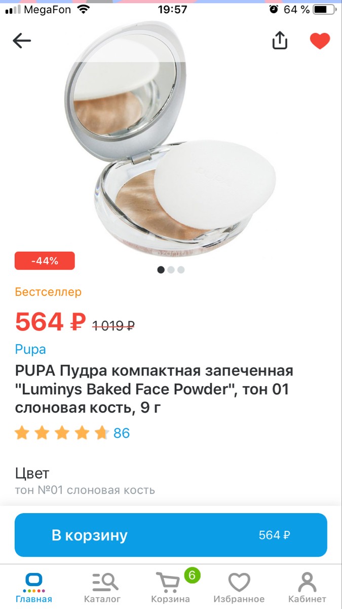 PUPA Пудра компактная запеченная "Luminys Baked Face Powder", тон 01 Ivory Beige