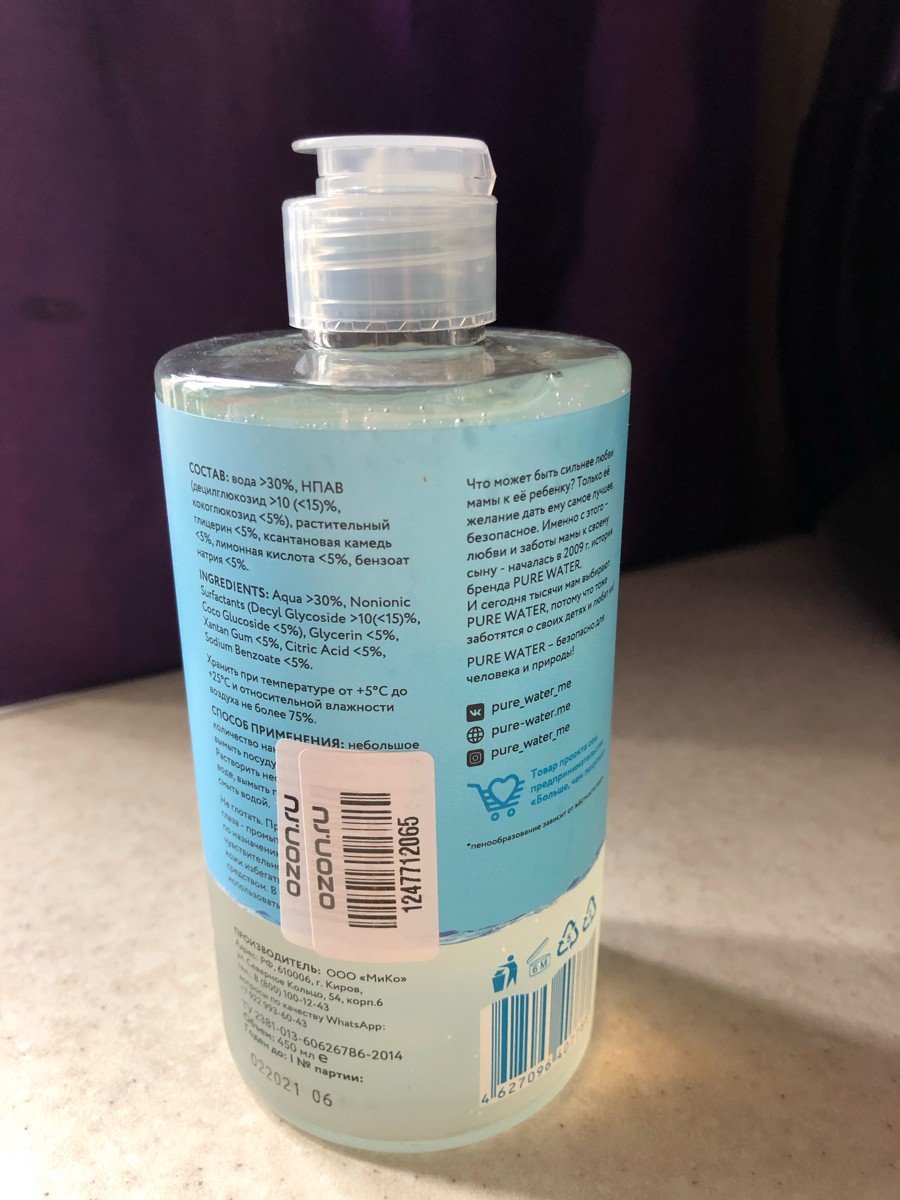 Средство для мытья детской посуды Pure Water, 450 мл