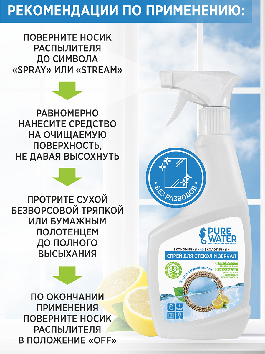 PURE WATER Средство для мытья посуды Гипоаллергенное