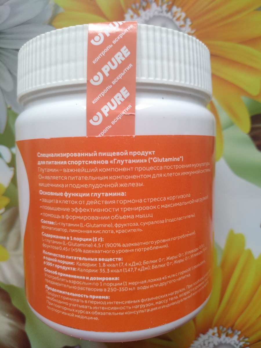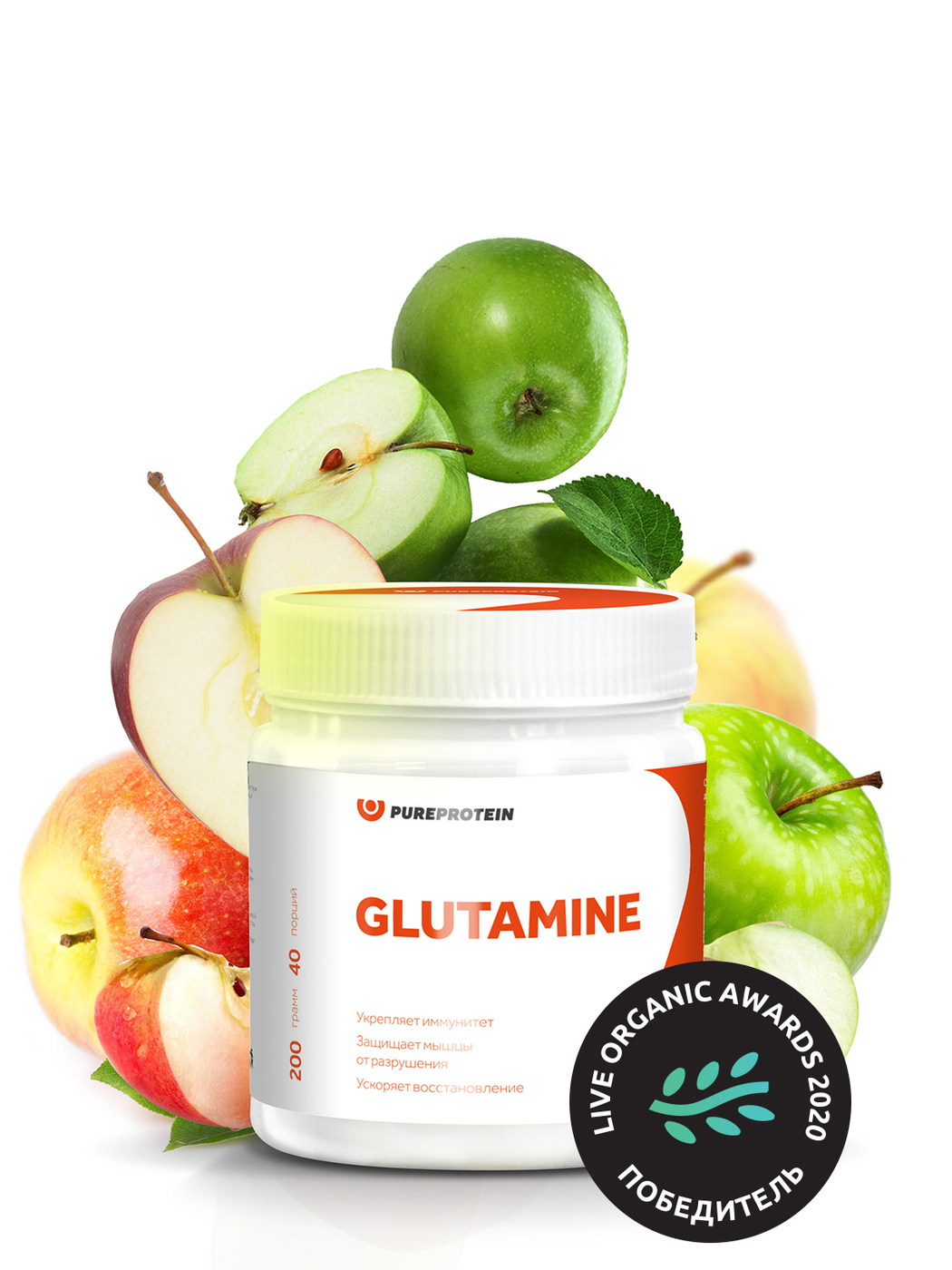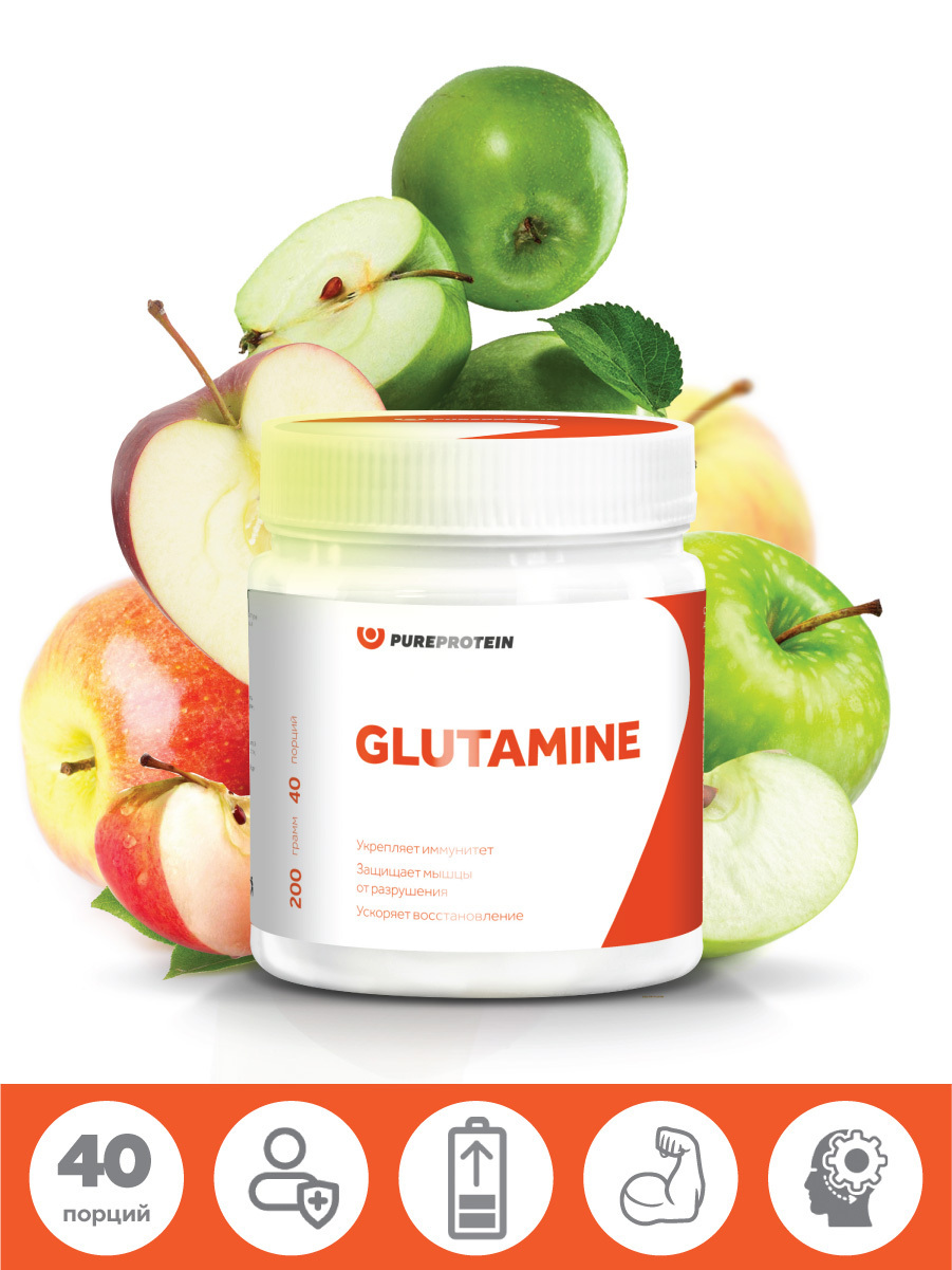 Аминокислота / Глютамин / Glutamine / PureProtein / 200г / Зеленое яблоко