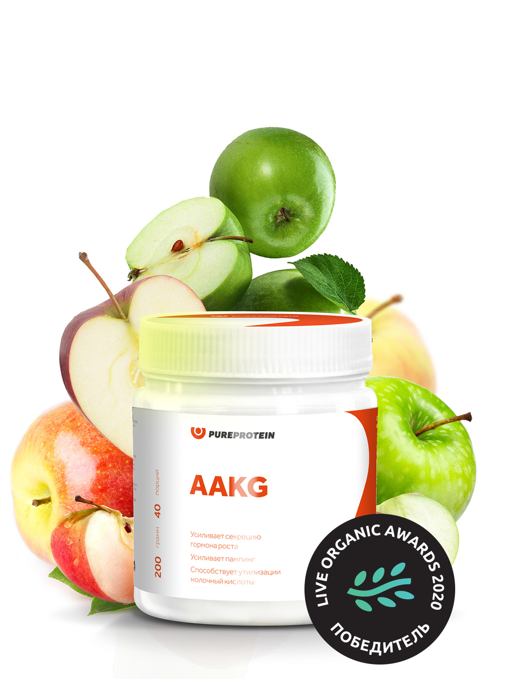 Аргинин / Аминокислота / ААКГ / PureProtein / AAKG / 200г / Зеленое яблоко
