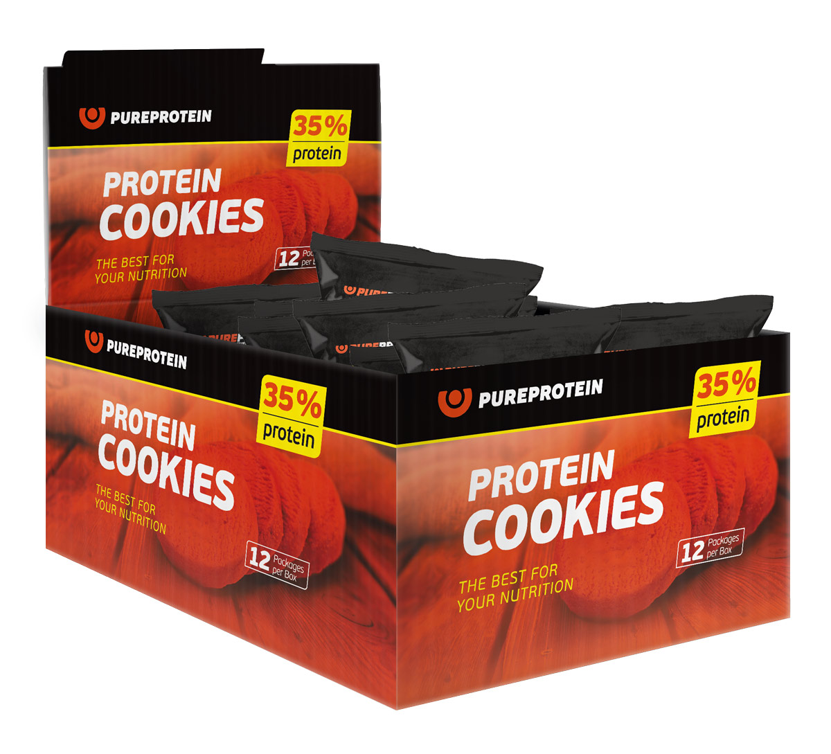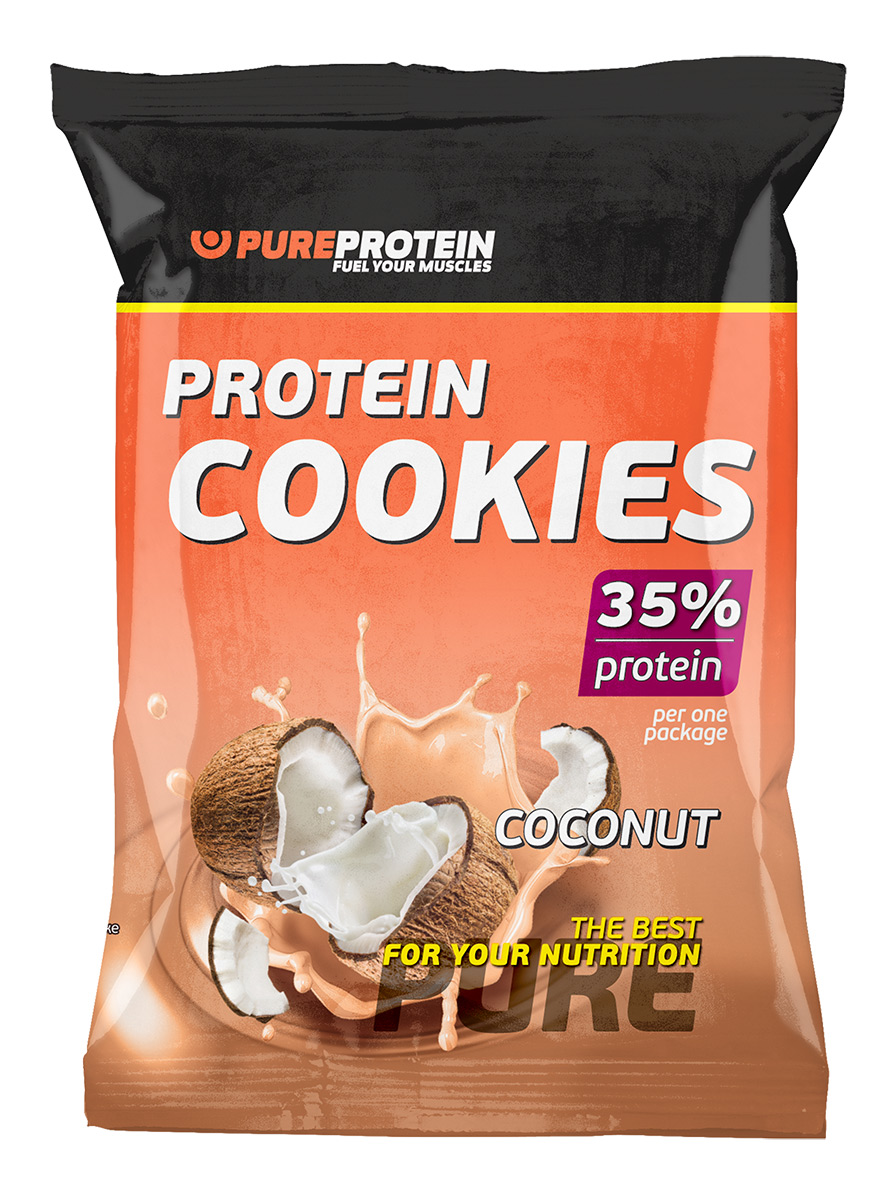 Печенье протеиновое / 35% белка / Без сахара / PureProtein / 24шт (12уп по 80г) / кокос