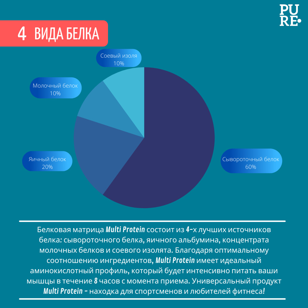 Мультикомпонентный протеин Pureprotein Фьюз 47% + BCAA: Молочный шоколад (750г)