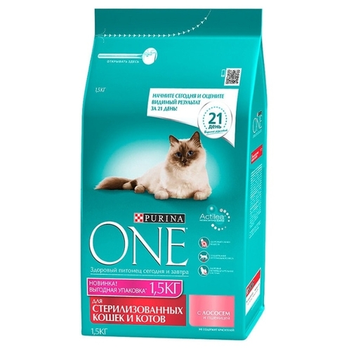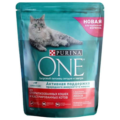Корм для стерилизованных кошек Purina ONE для профилактики МКБ, с лососем и с пшеницей