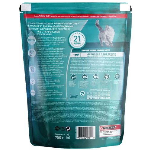 Корм для стерилизованных кошек Purina ONE для профилактики МКБ, с лососем