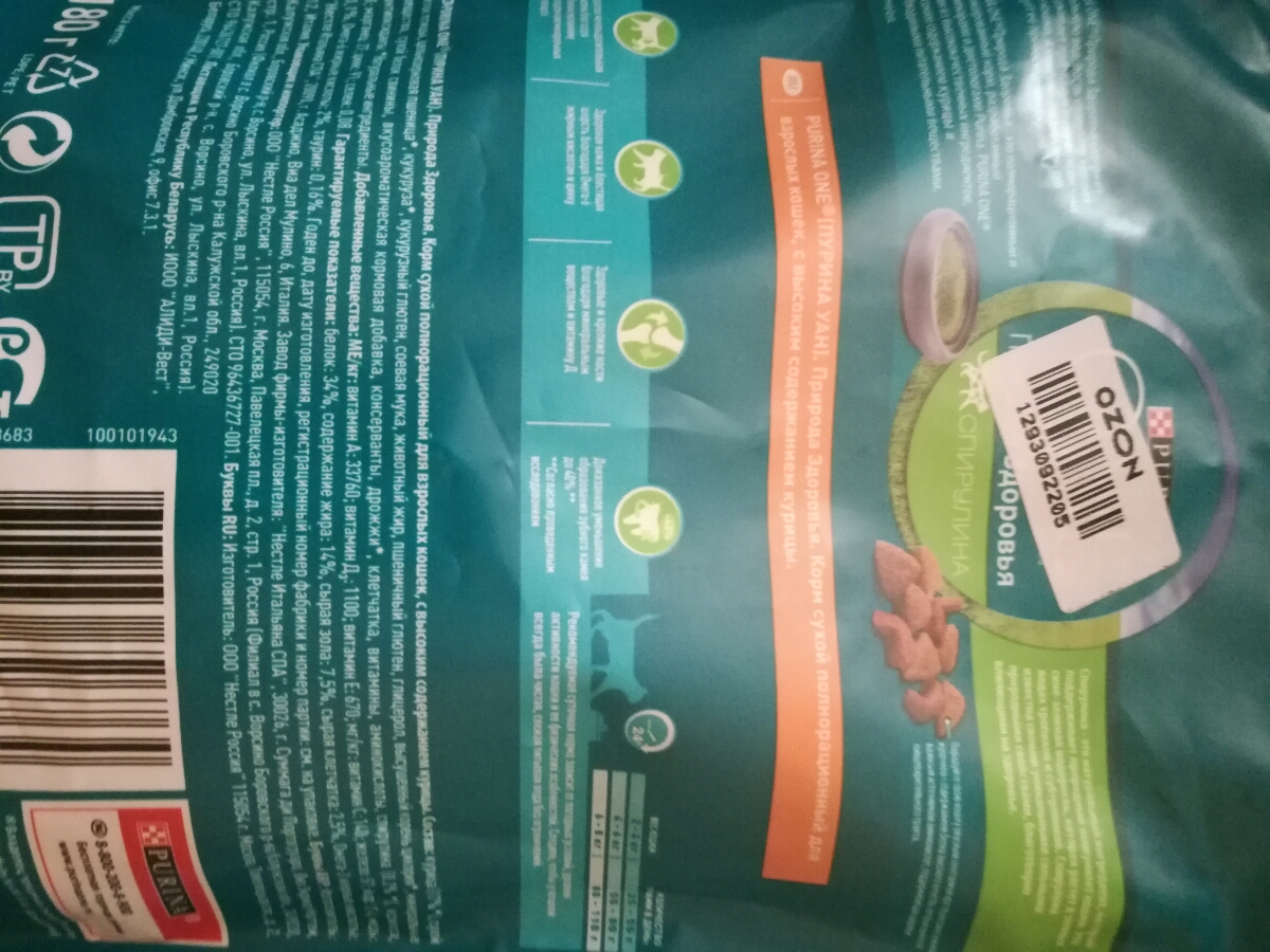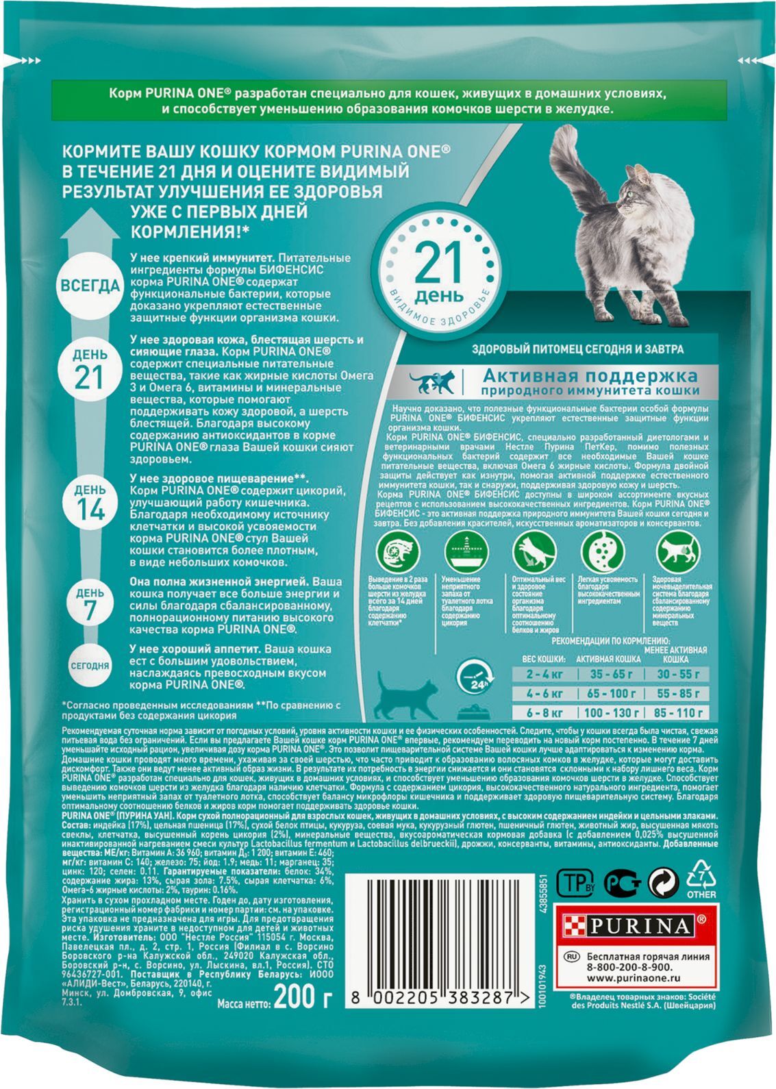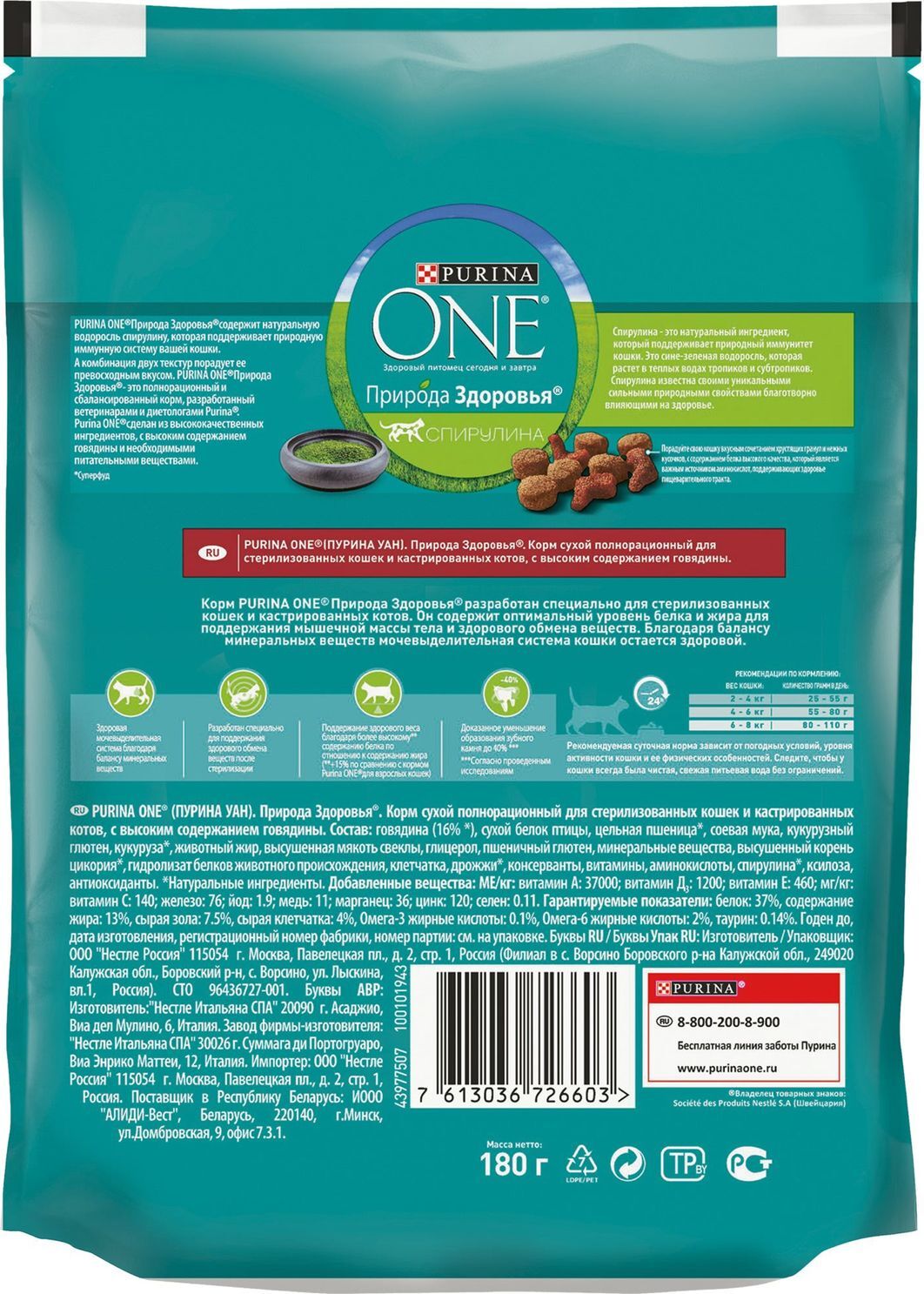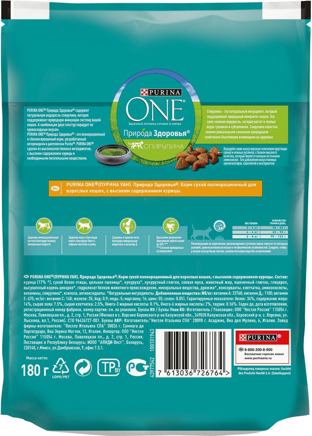 Сухой корм Purina ONE Природа Здоровья для взрослых кошек, с высоким содержанием курицы, 180 г