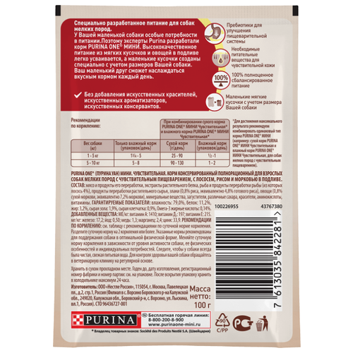 Корм для собак Purina ONE МИНИ Чувствительная с Лососем, рисом и морковью в подливе