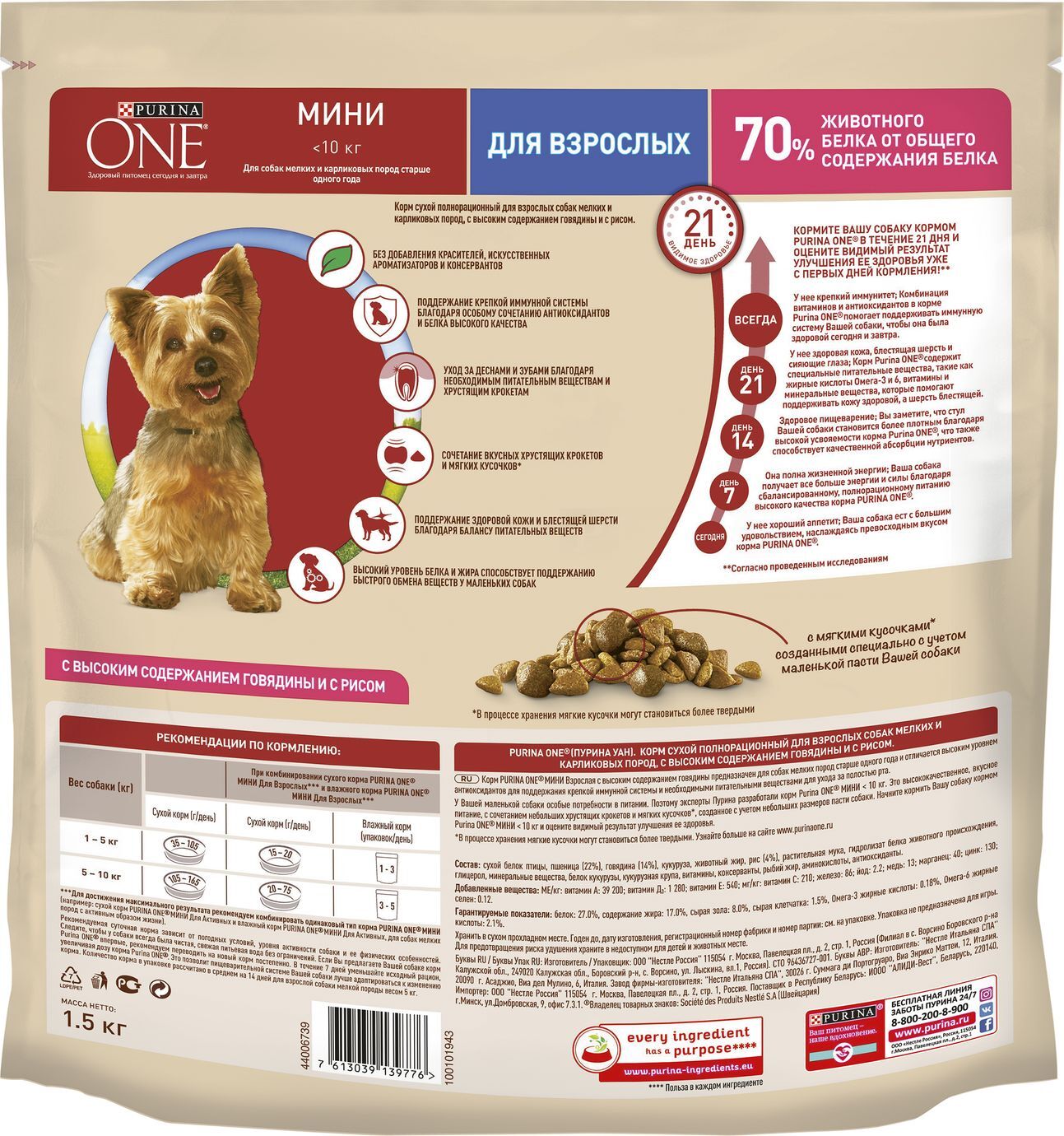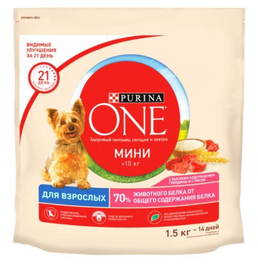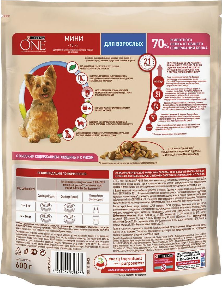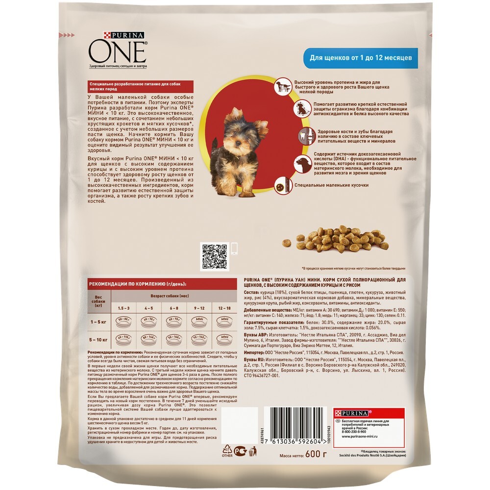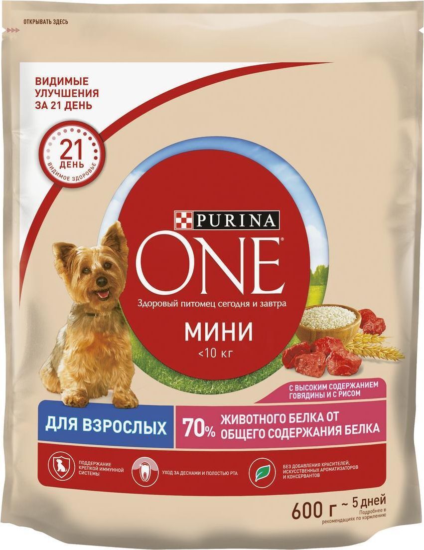 Сухой корм для собак мелких пород Purina One с чувствительным пищеварением, с лососем и рисом, 600 г