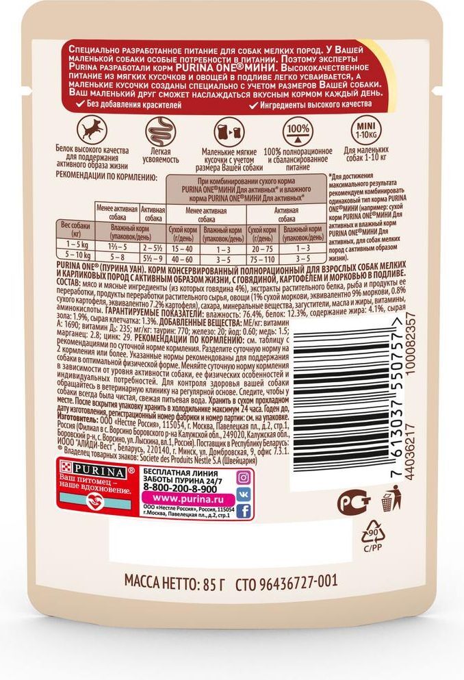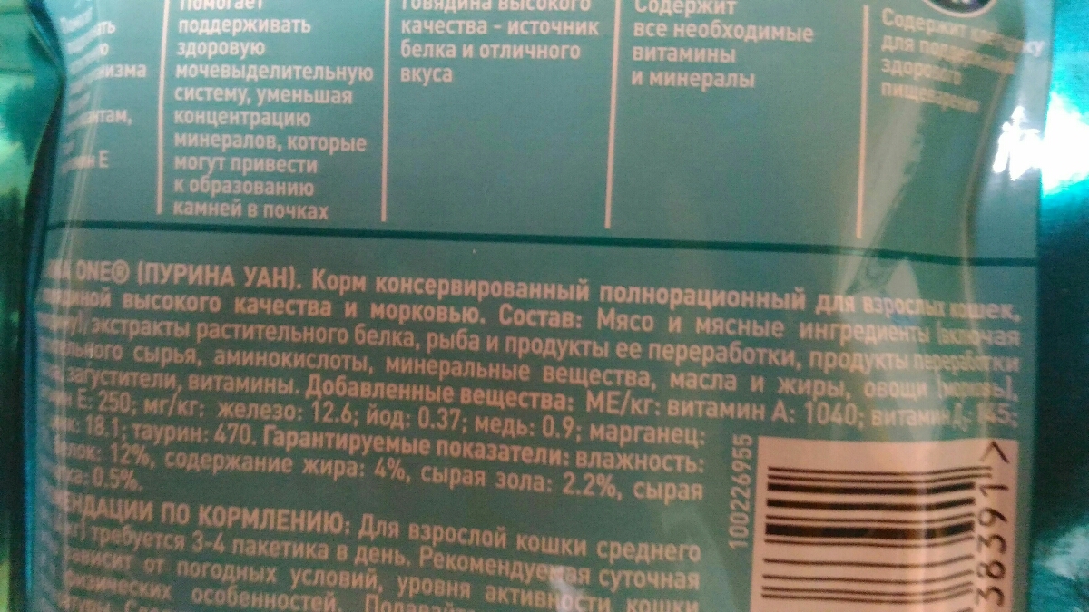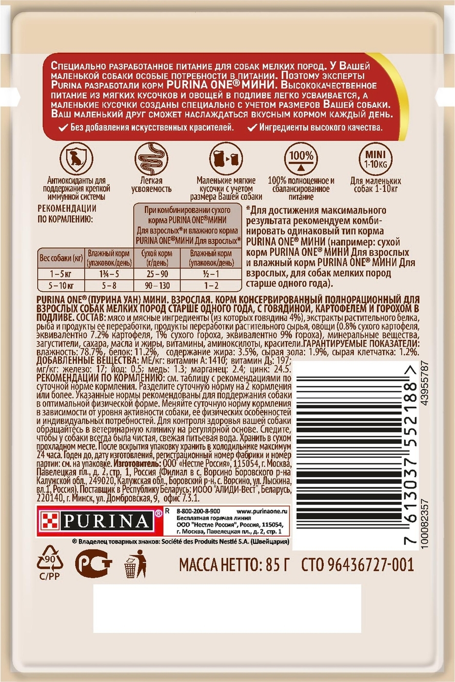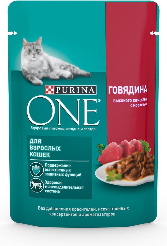 Влажный корм Purina ONE для взрослых кошек, с говядиной и морковью, 26 шт х 75 г