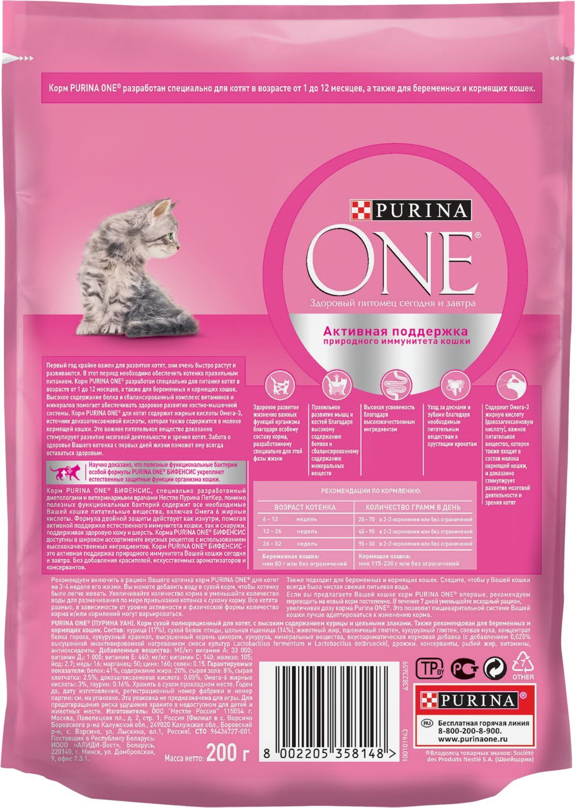 Сухой корм для котят Purina One, с высоким содержанием курицы и цельными злаками, 200 г