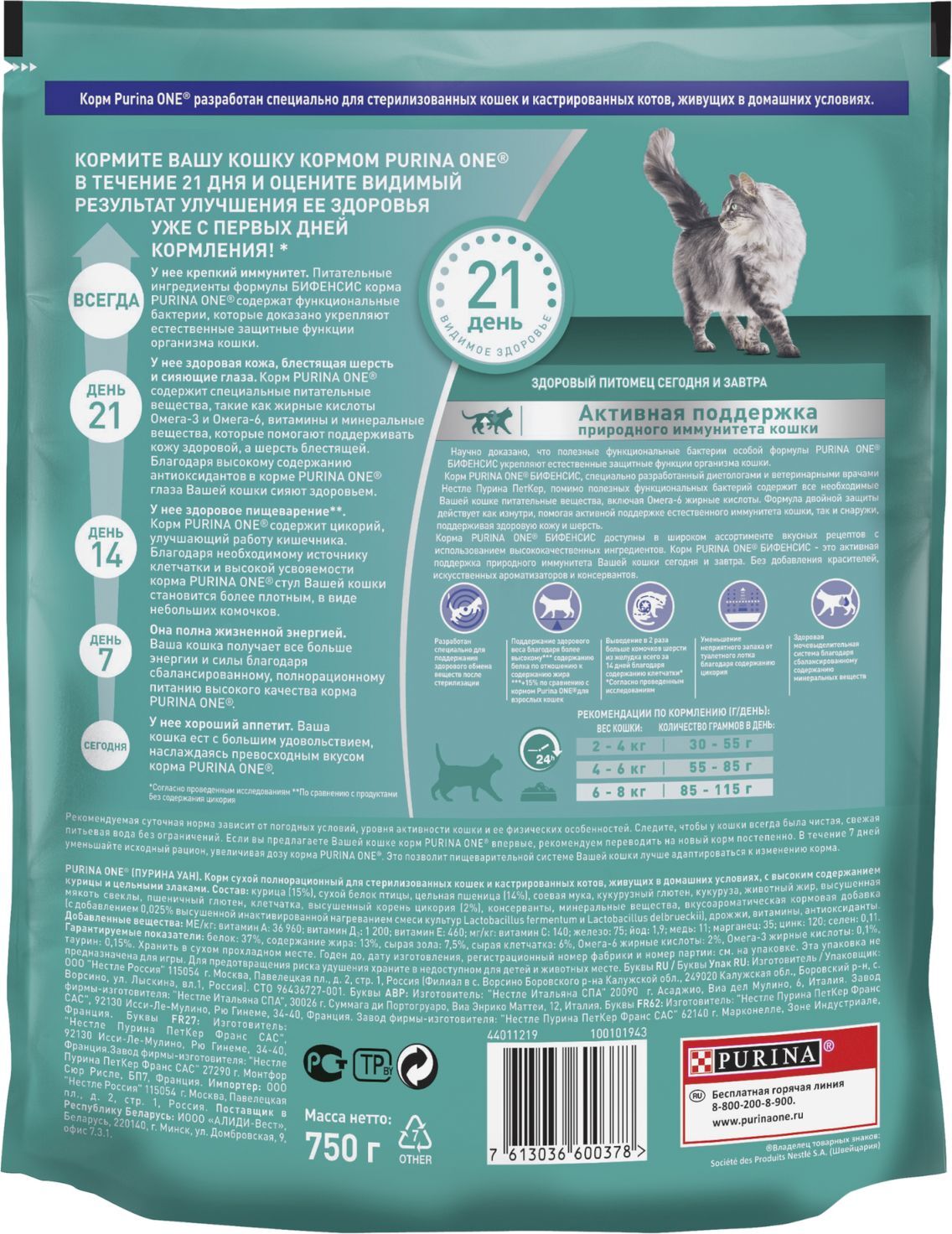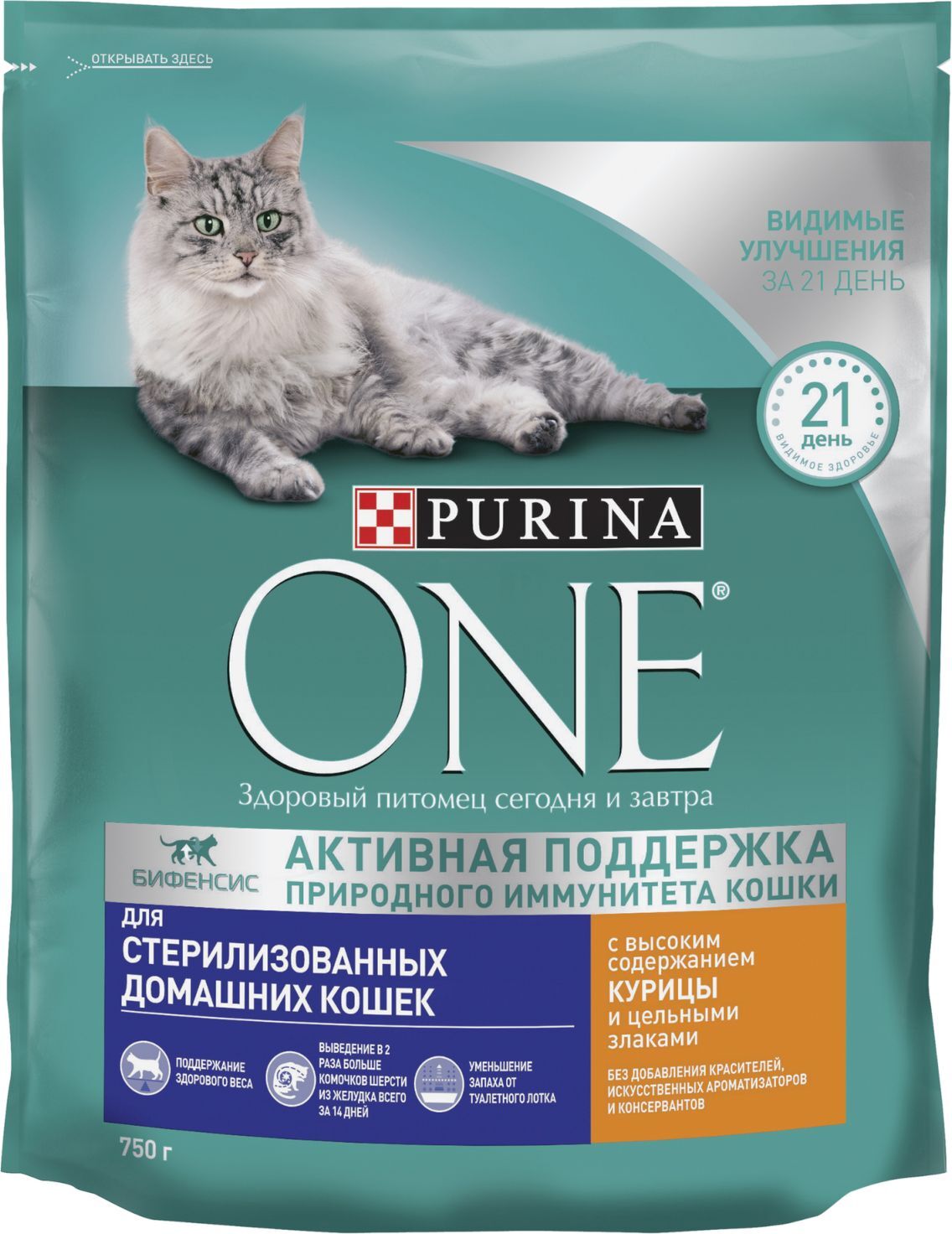 Сухой корм для кошек Purina ONE Sterilised для стерилизованных, с курицей, 750 г
