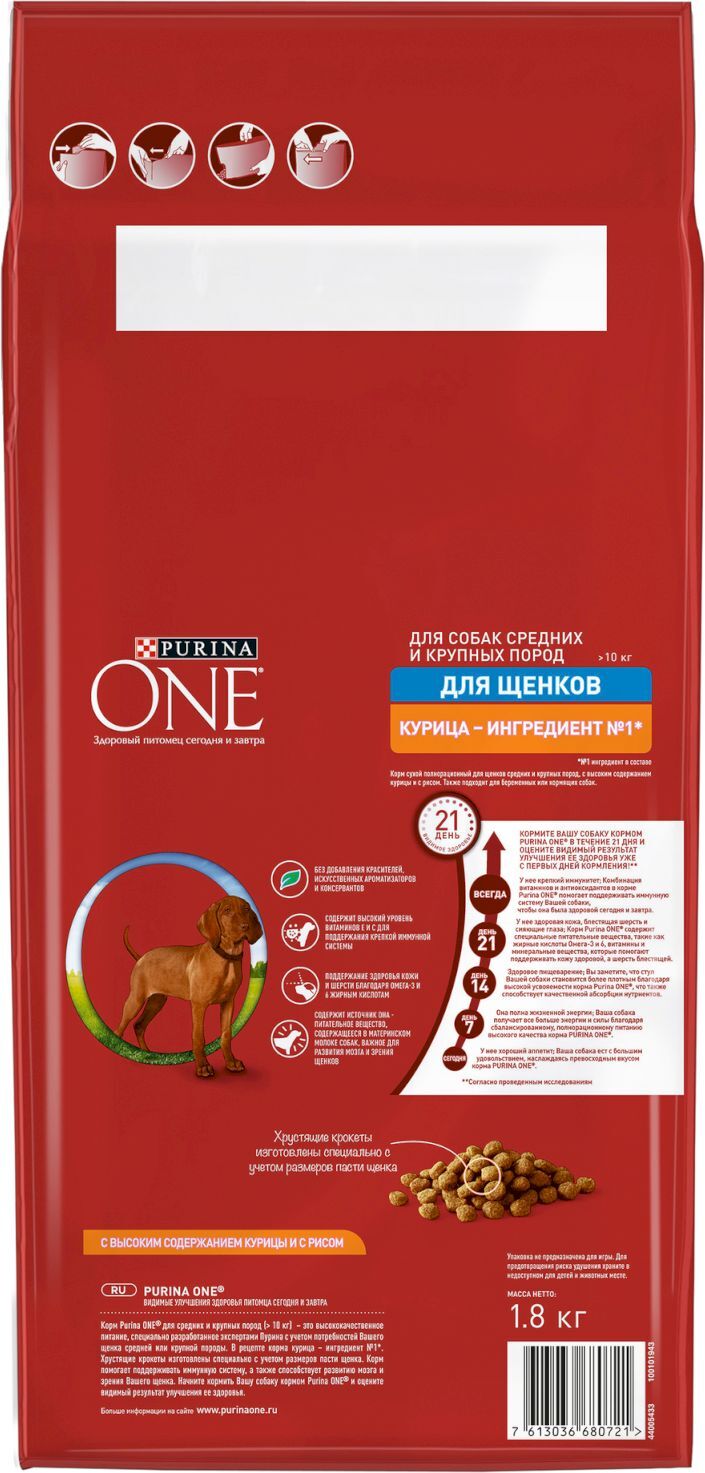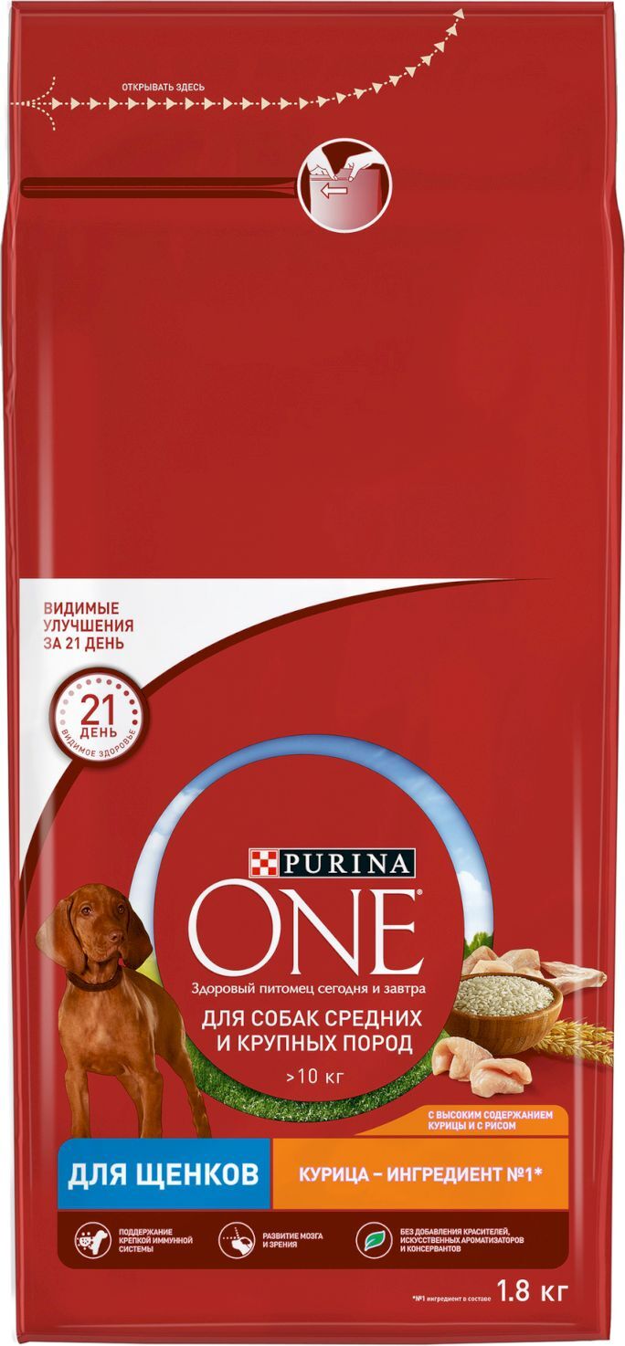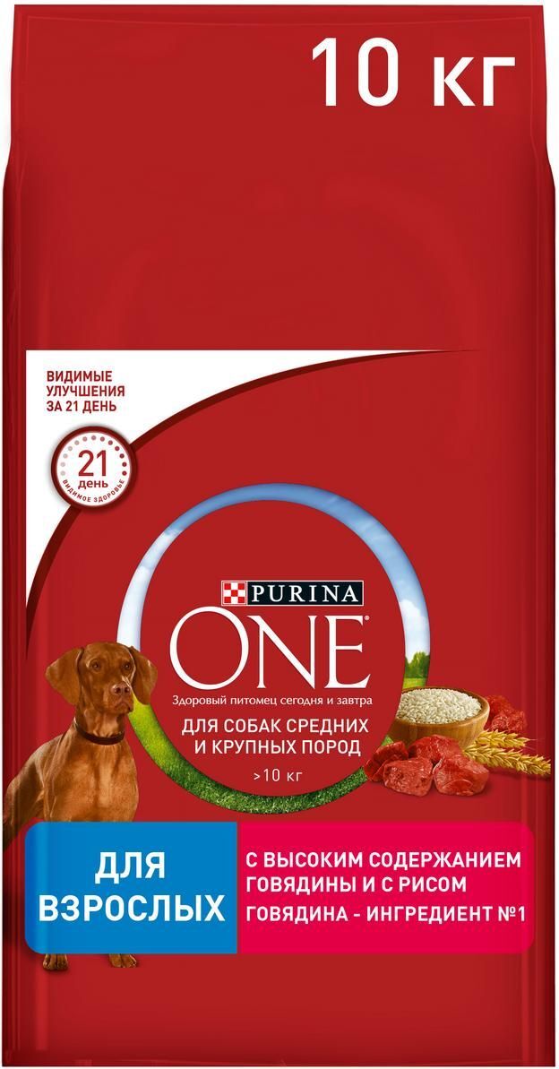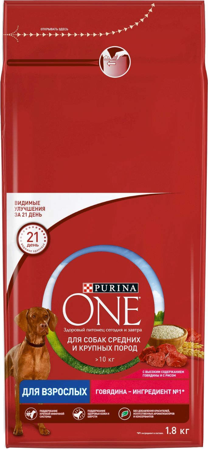 Сухой корм для собак средних и крупных пород Purina ONE Adult, с говядиной, 1,8 кг