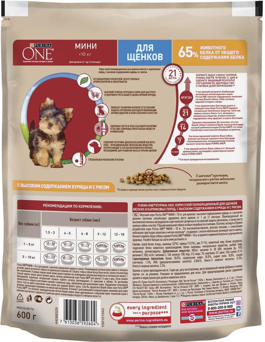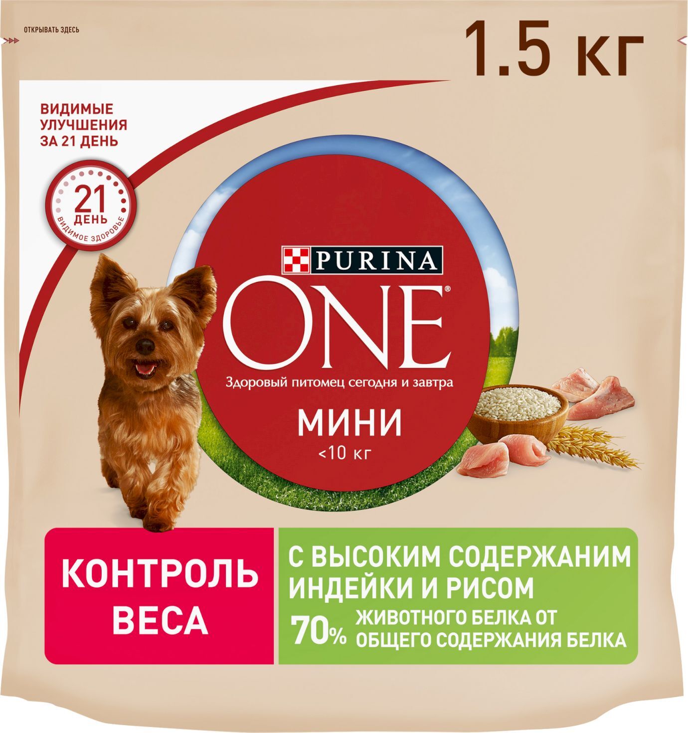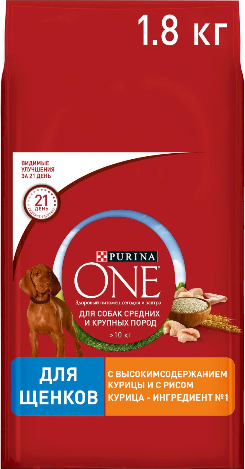 Сухой корм для собак средних и крупных пород Purina ONE Adult, с говядиной, 1,8 кг