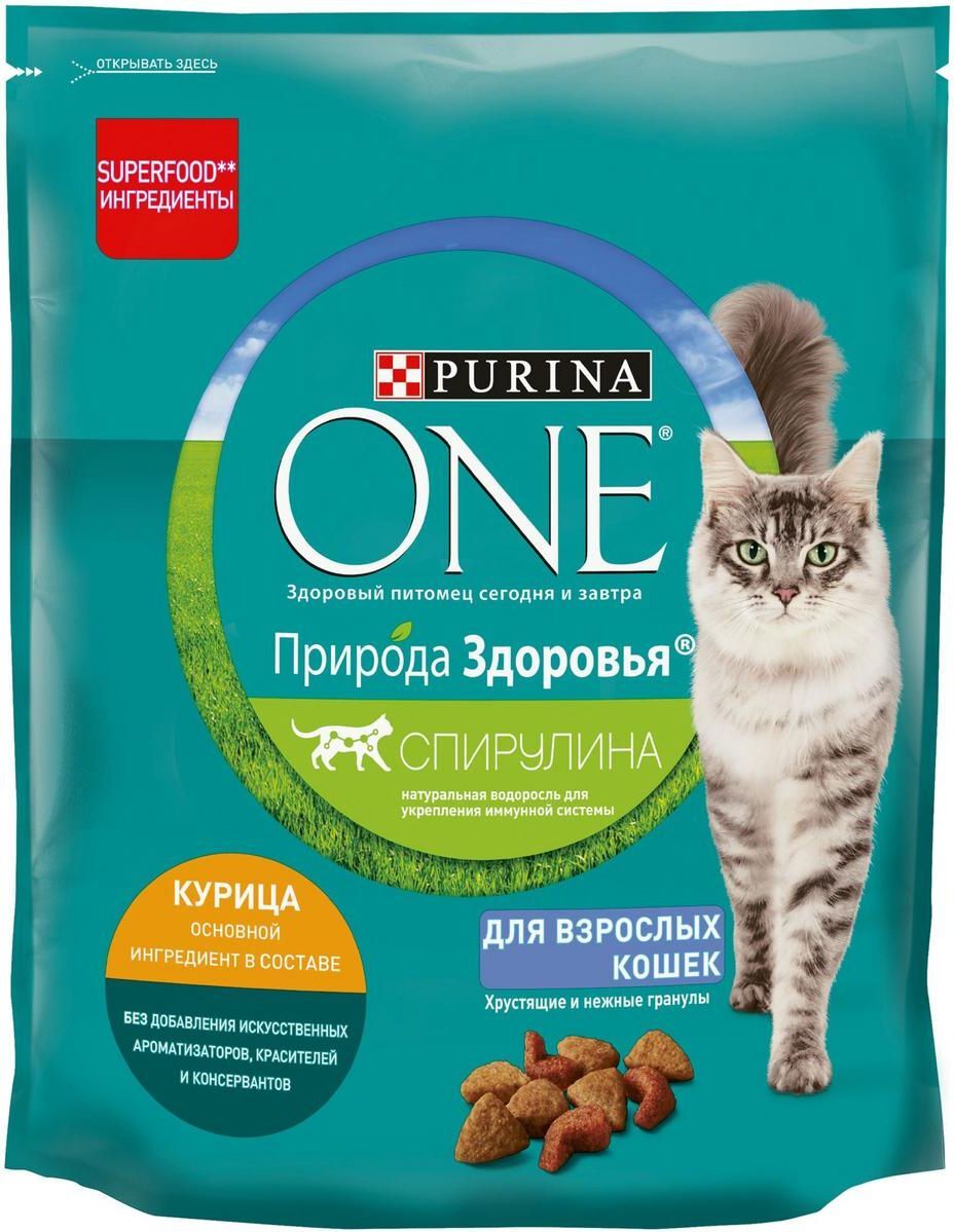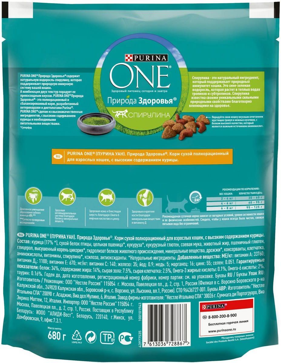 Сухой корм Purina ONE Природа Здоровья для взрослых кошек, с высоким содержанием курицы, 680 г