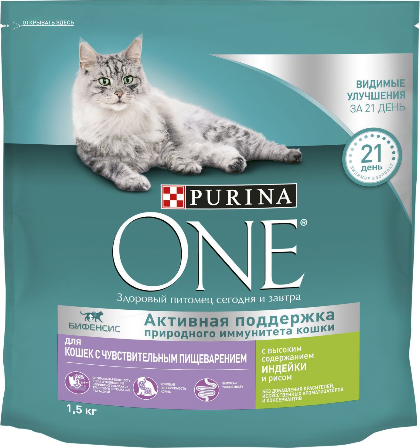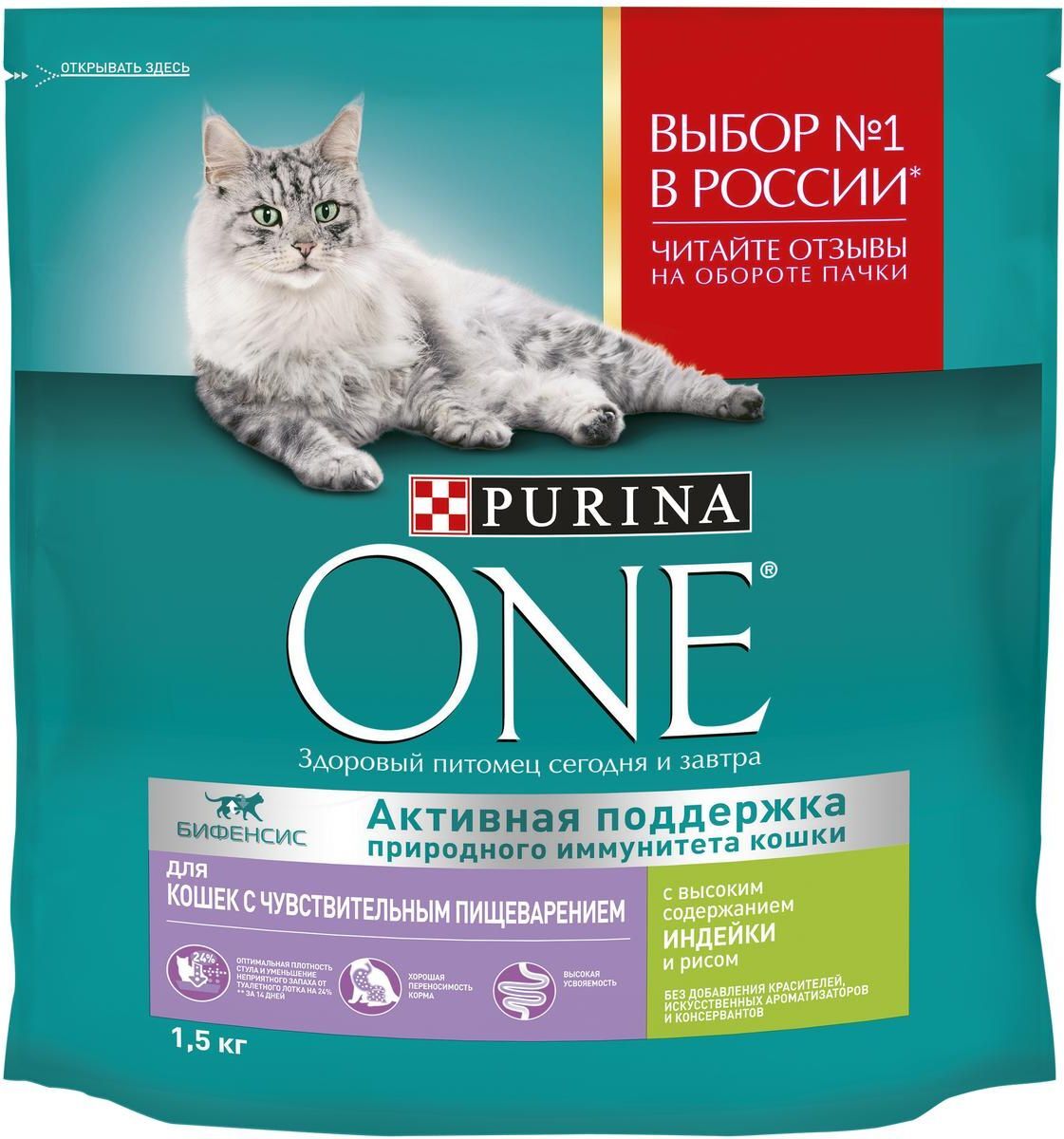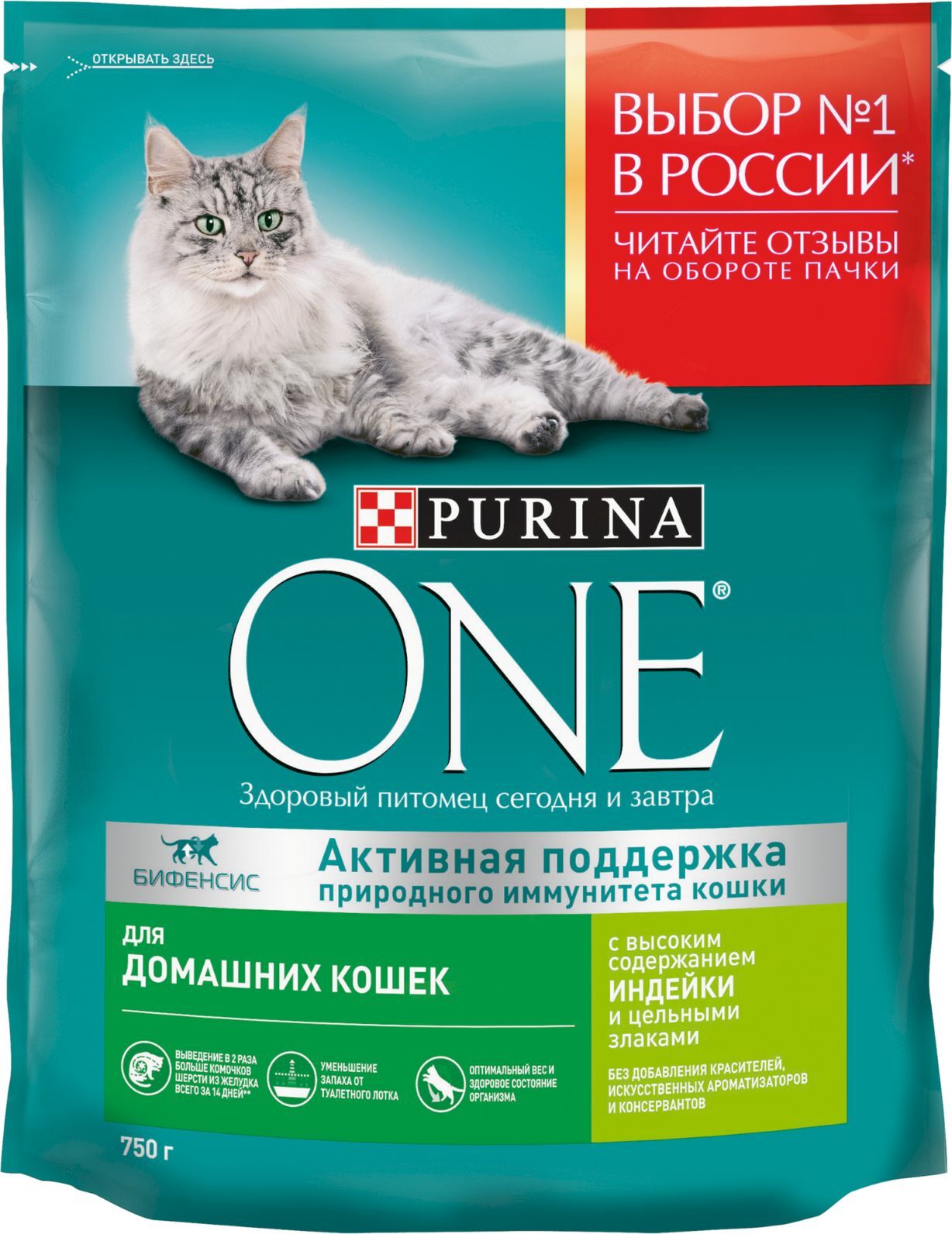 Сухой корм для кошек Purina ONE Housecat при домашнем образе жизни, с индейкой, 750 г