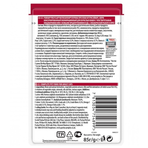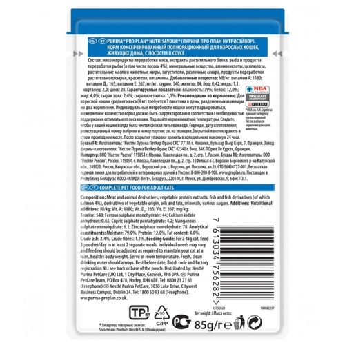 Корм для кошек Purina Pro Plan Nutrisavour беззерновой, с лососем 85 г (кусочки в соусе)