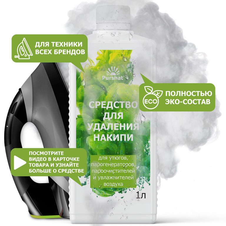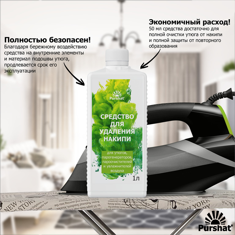 Средство от накипи для утюгов Пуршат парогенераторов и увлажнителей воздуха 1000 мл