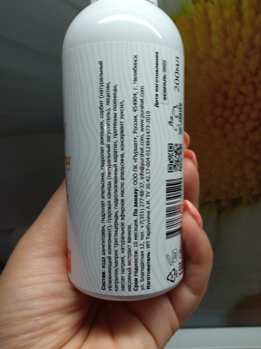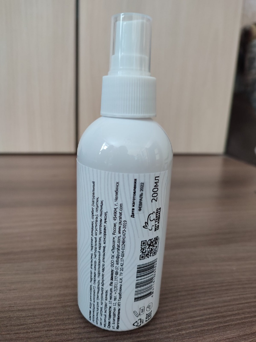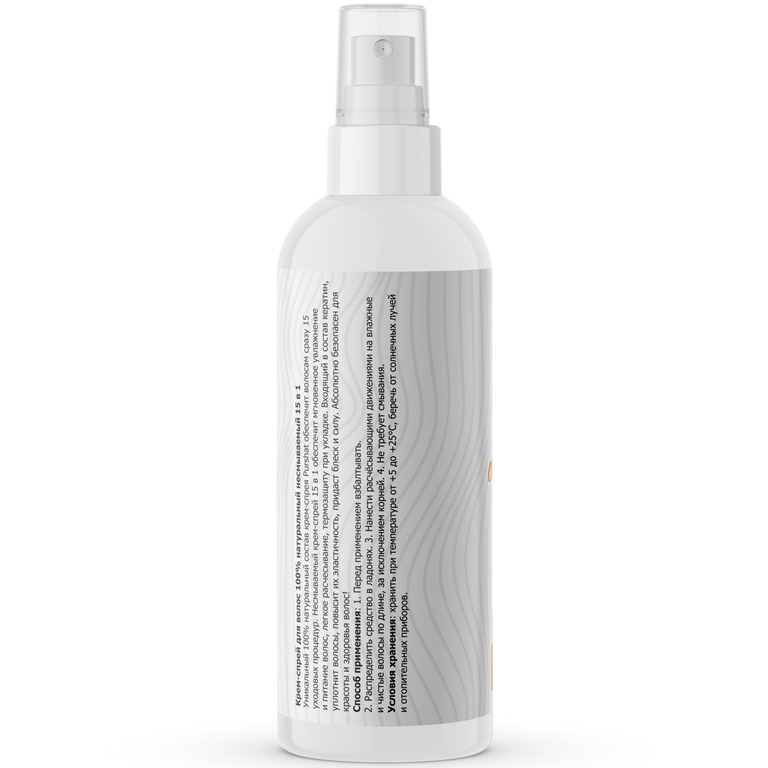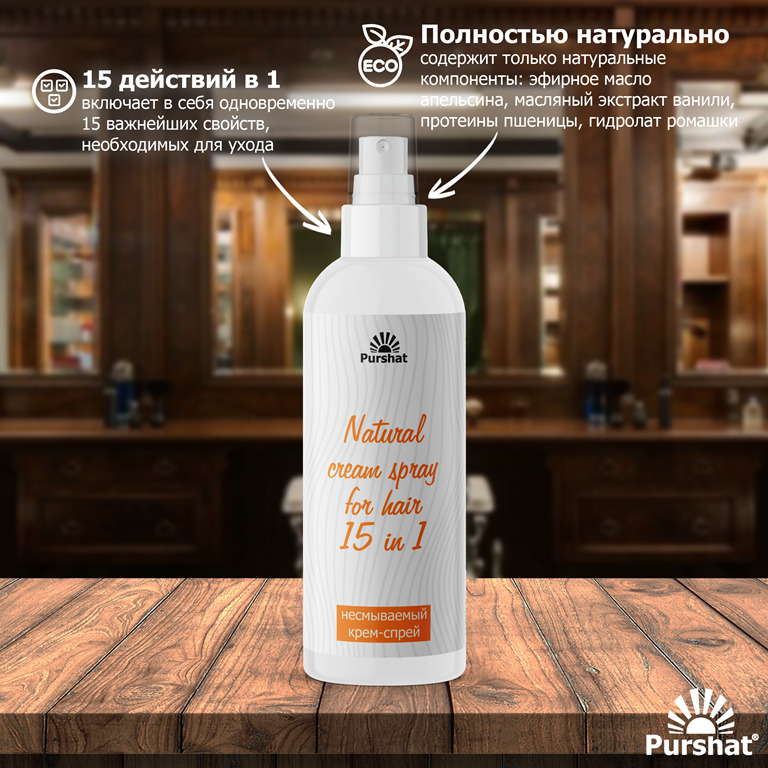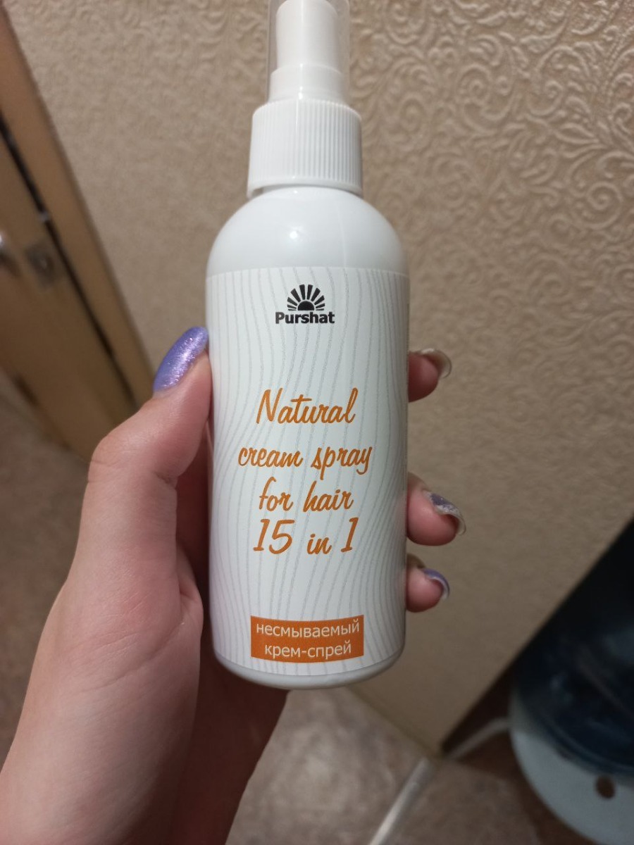 Крем-спрей для волос 100% натуральный несмываемый 15 в 1 Пуршат (Purshat) 200 мл