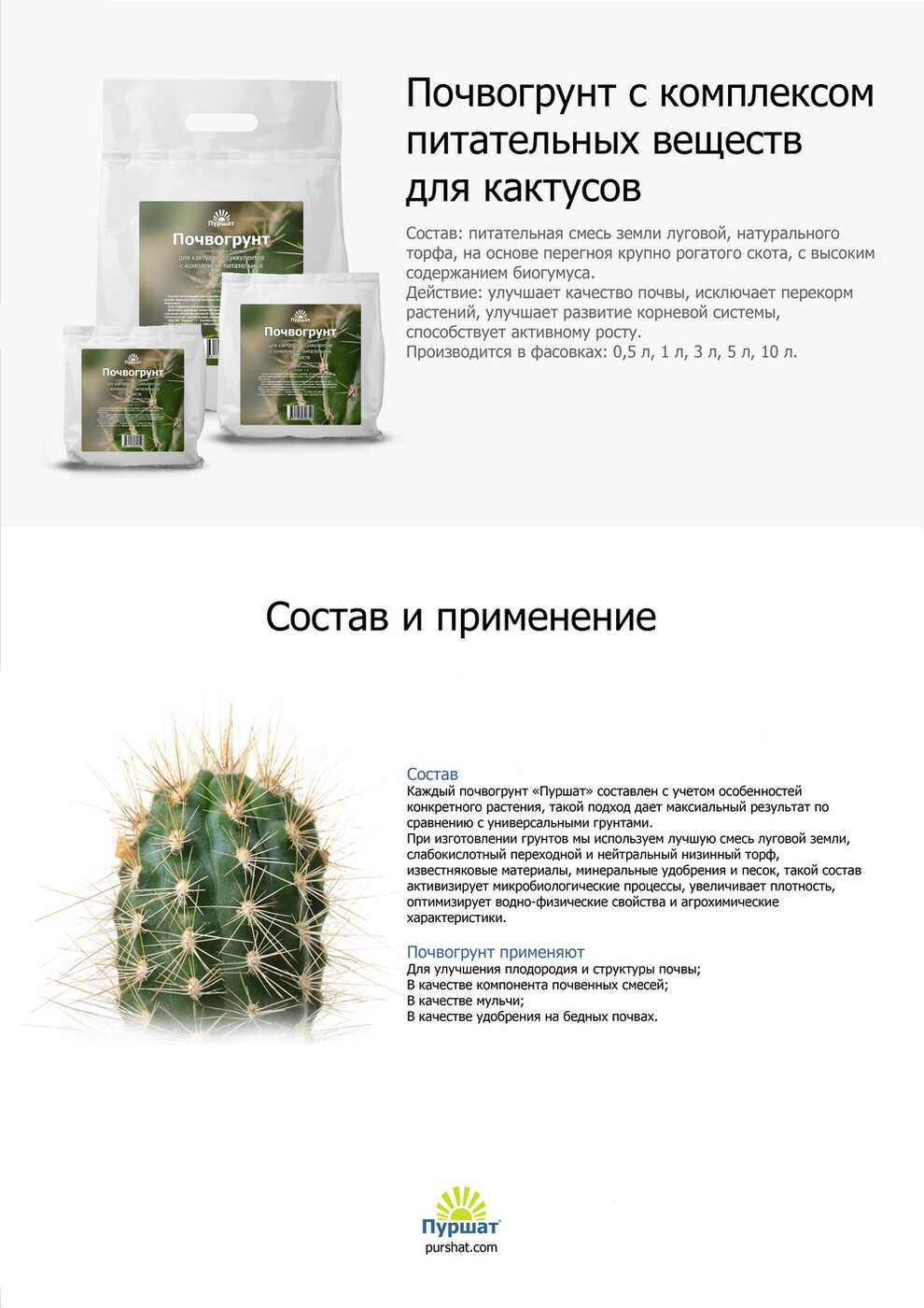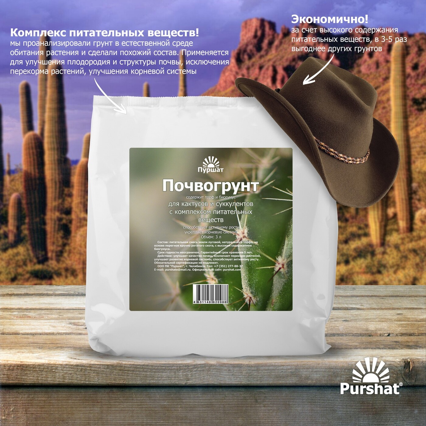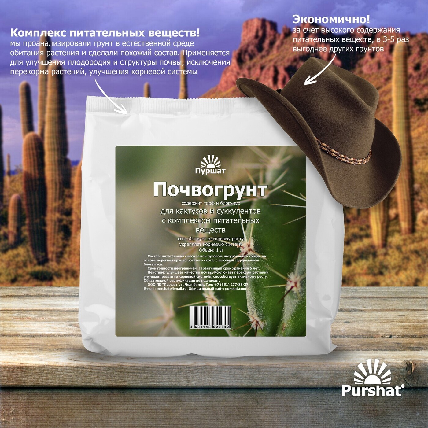 Грунт для суккулентов и кактусов Пуршат 1 л