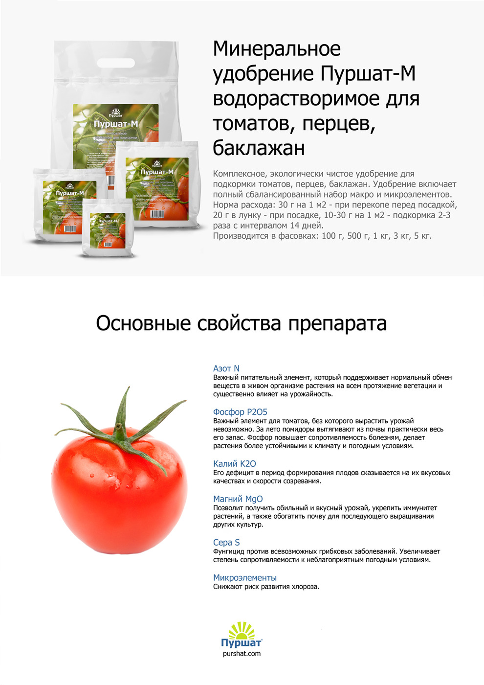 Удобрение для томатов, перцев и баклажан Пуршат водорастворимое 500г