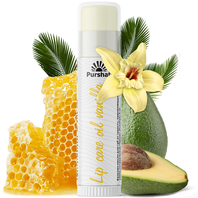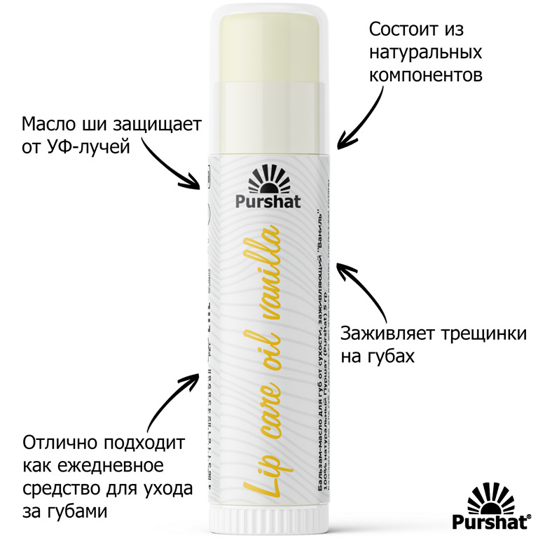 Purshat Восстанавливающий бальзам-масло для губ от сухости, заживляющий Ваниль 100% натуральный 5 гр