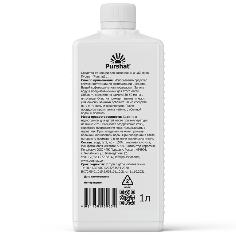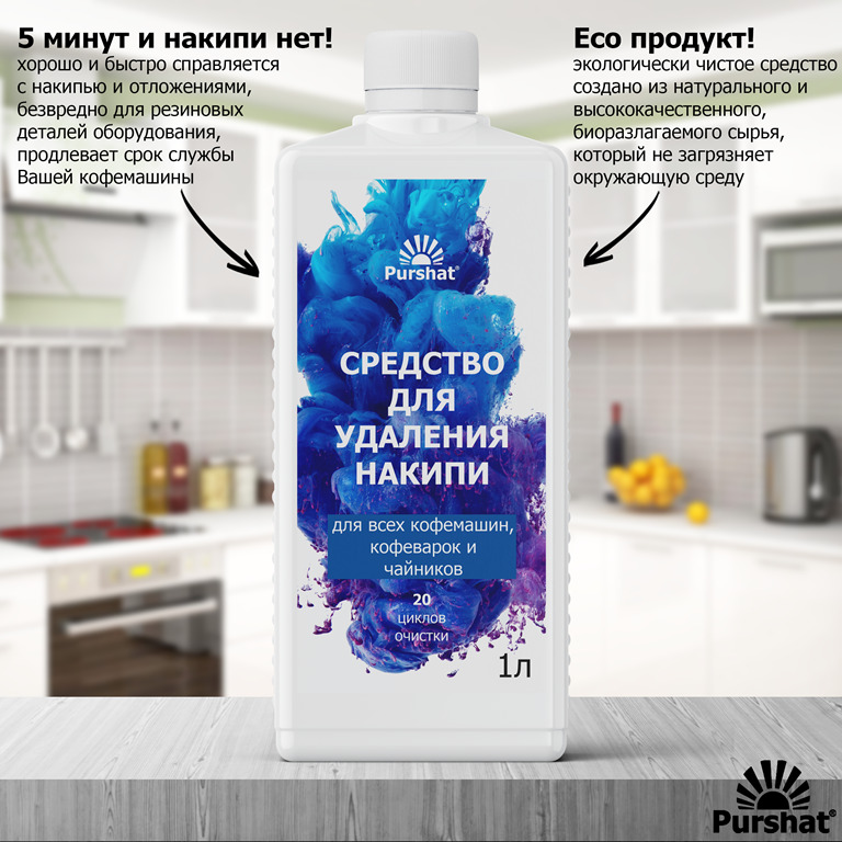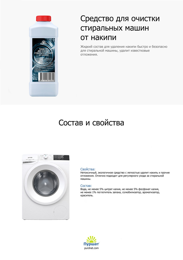 Средство для очистки стиральных машин от накипи Пуршат 1 л