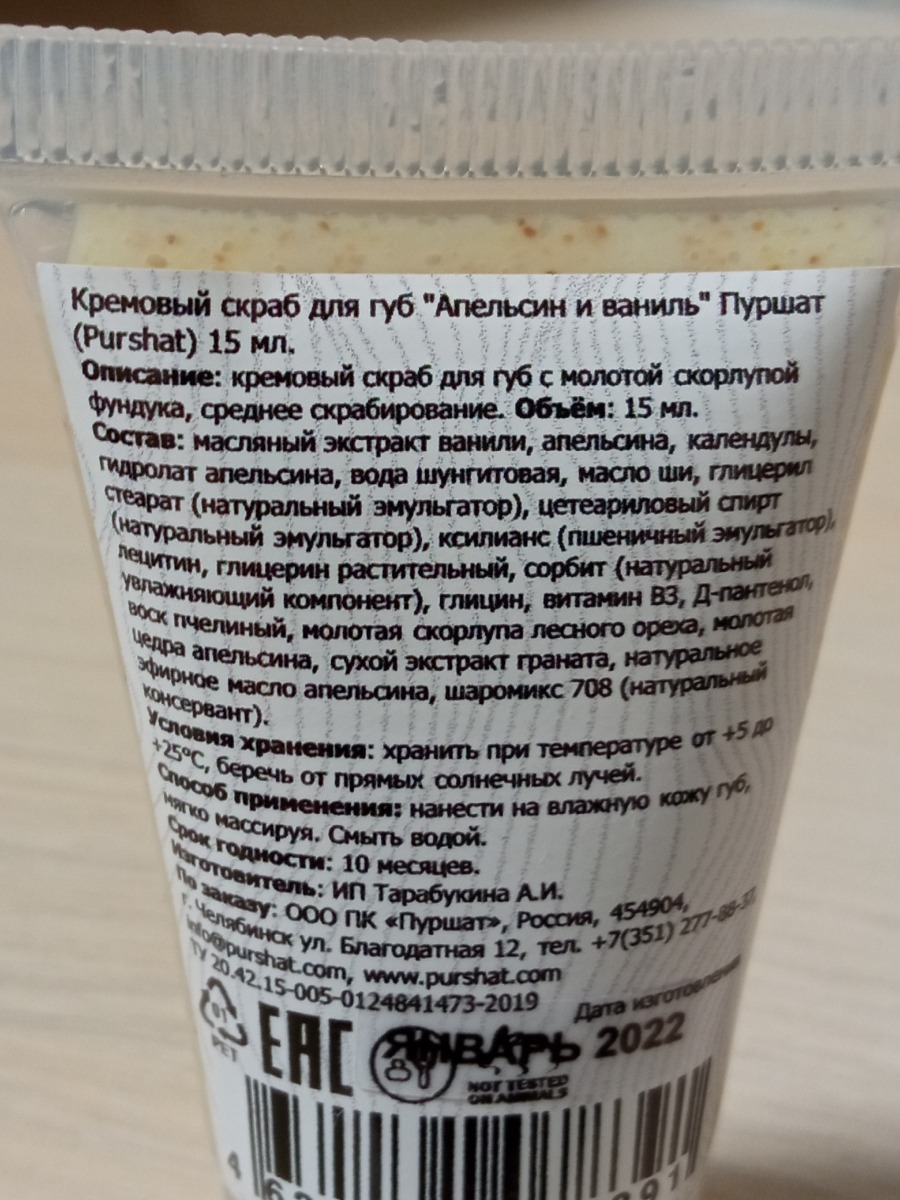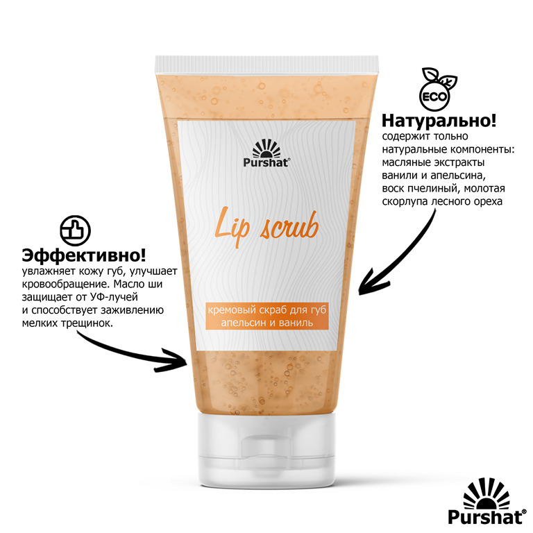 Purshat Кремовый скраб для губ Апельсин и ваниль Пуршат 15 мл