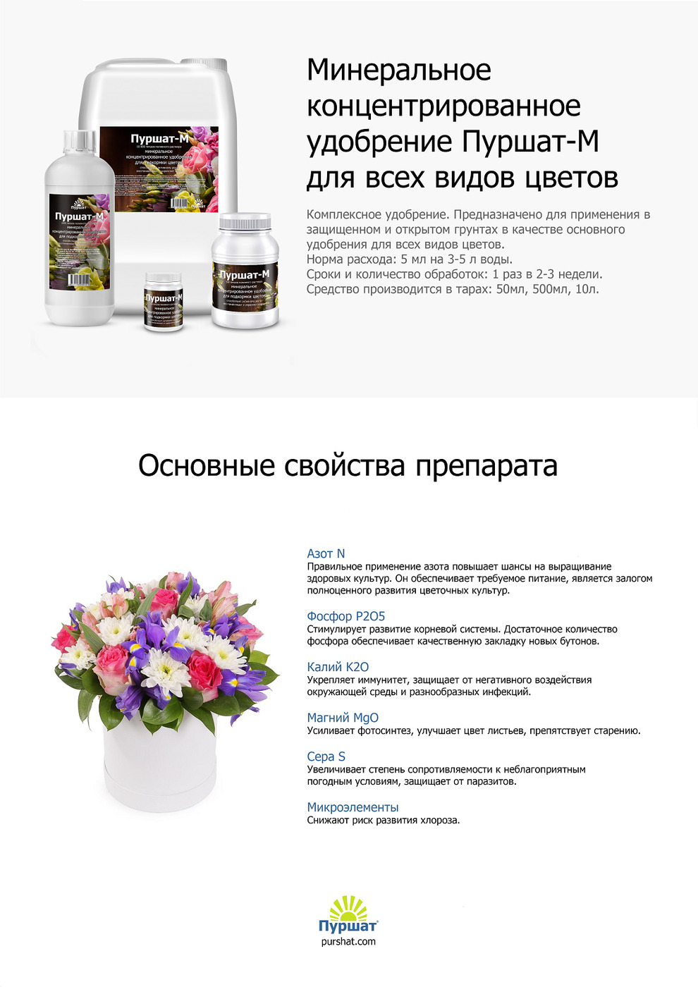 Удобрение Пуршат-М концентрат для цветов, 1л