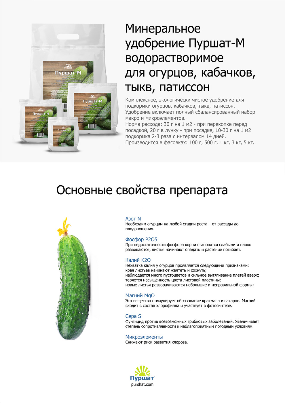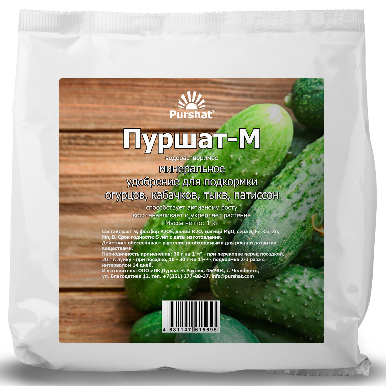 Удобрение для огурцов Пуршат для кабачков, тыквы водорастворимое 1 кг