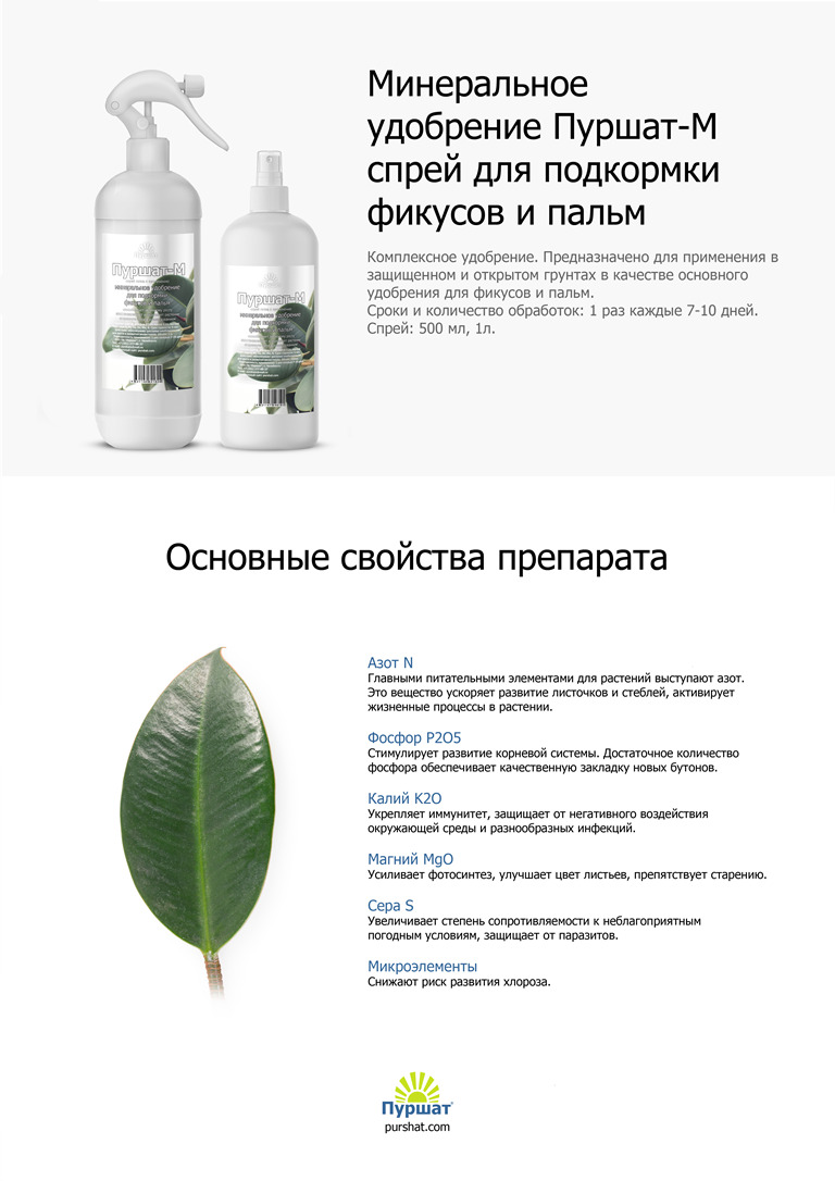 Удобрение для фикуса и пальм Пуршат спрей 500 мл